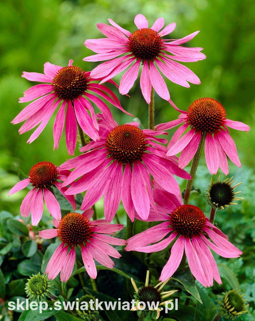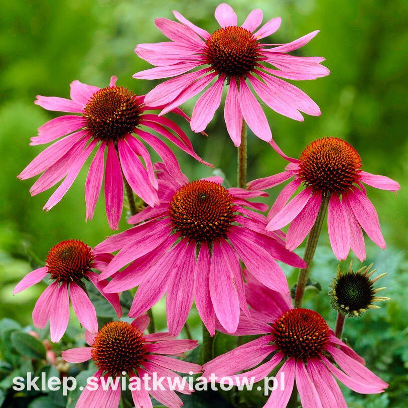 Jeżówka różowa Magnus to bylina, która przykuje uwagę do ślicznie ułożonych na końcach sztywnych łodyg koszyczków. Rewelacyjnie prezentujące się jeżówki to prawdziwy skarb ogrodnika. Są bardzo proste w uprawie, długo kwitnące i odporne na choroby. Wysokie, rozgałęzione kępy z ciemnozielonymi, lancetowatymi liśćmi przystrojone są kwiatostanami o różowo-purpurowej barwie. Ich urocze oblicza dekorują ogród od lipca do października. Jest to roślina idealnie komponująca się na rabacie bylinowej z odętką, rudbekią, przetacznikami, floksami czy smukłą ostróżką. Jeżówki to dobrej jakości kwiaty cięte. Ich kolczaste środki to materiał do suszenia i wykorzystywania w trwałych dekoracjach. Grupa jeżówek jest świetną propozycją do zasadzenia na naturalistycznej rabacie albo w okolicy łączki kwietnej. Jeżówki są coraz chętniej wprowadzane do zieleni miejskiej. Dekorują parkowe klomby i pasy zieleni przy ulicach.