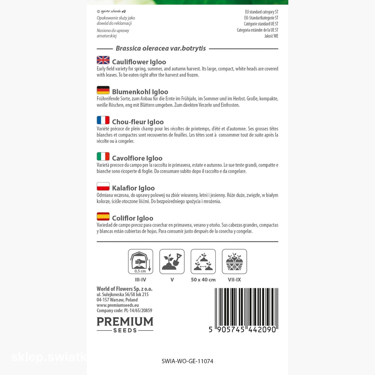 Kalafior Igloo preferuje stanowiska słoneczne lub lekko zacienione, z dobrze przepuszczalną i żyzną glebą. Regularne nawożenie organiczne oraz umiarkowane podlewanie są kluczowe dla uzyskania zdrowych i obfitych plonów. Gleba powinna być lekko kwaśna do obojętnej, co sprzyja zdrowemu wzrostowi roślin.