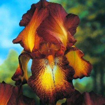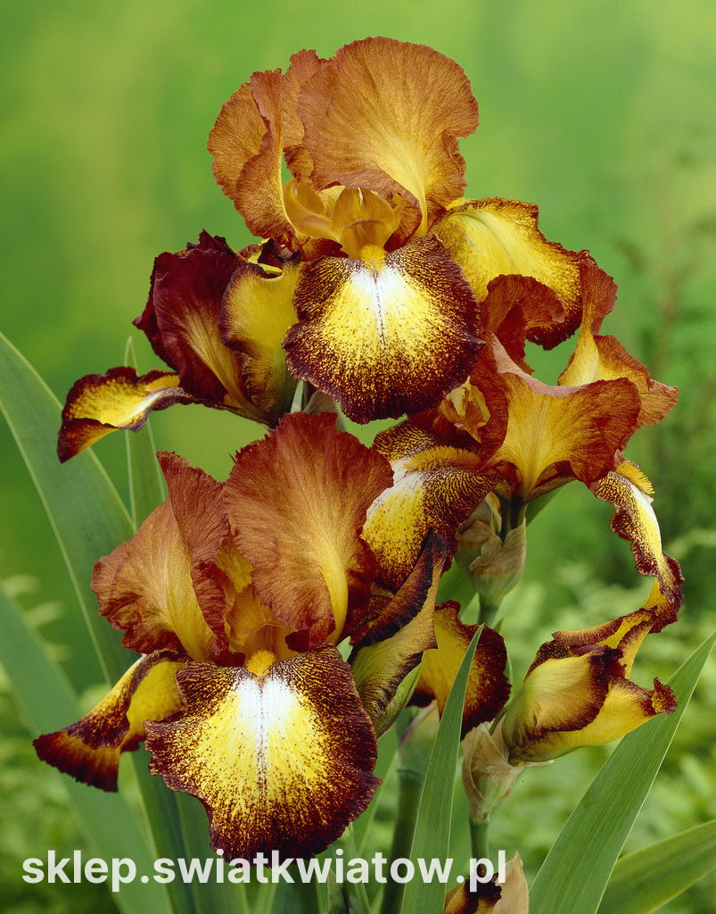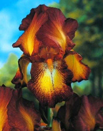 Kosacieć, Irys Bronze to odmiana o bardzo eleganckich, brązowych z żółtymi przebarwieniami kwiatach, pasujących zarówno do ogrodów nowoczesnych, jak również w klasycznym stylu.