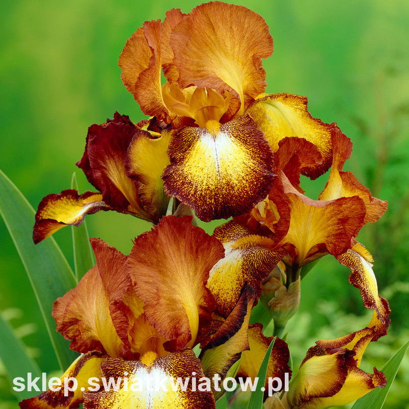 Kosacieć, Irys Bronze to odmiana o bardzo eleganckich, brązowych z żółtymi przebarwieniami kwiatach, pasujących zarówno do ogrodów nowoczesnych, jak również w klasycznym stylu.