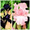 Zestaw zawiera 10 sztuk sadzonek irysów, kosaćców. W skład zestawu wchodzą 2 odmiany: Kosaciec, irys różowy oraz Kosaciec, irys czarny - Black Night.