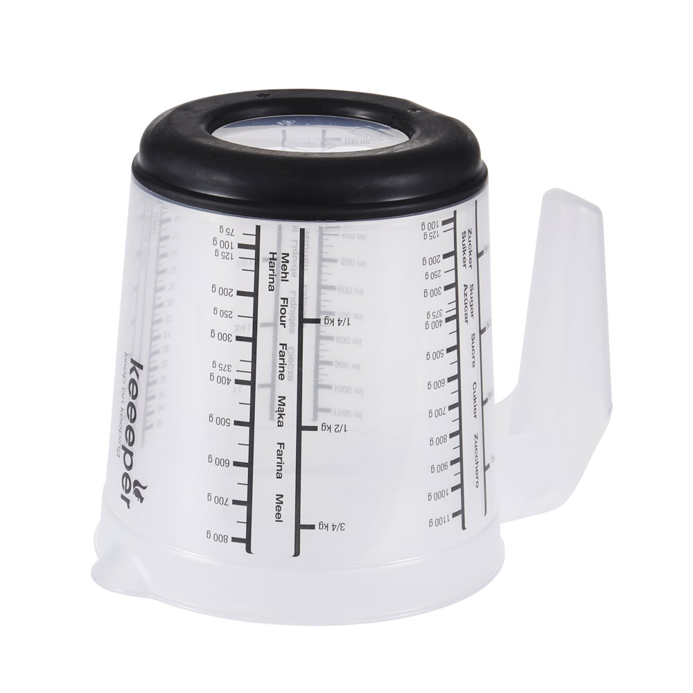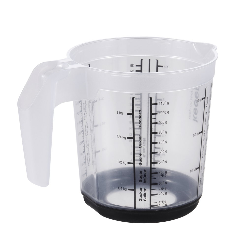 Przezroczysty kubek z miarką Massimo to bardzo funkcjonalny produkt, ułatwiający odmierzanie proporcji podczas przyrządzania dań. Wyposażono go w wygodny dziobek ułatwiający przelewanie lub przesypywanie produktów spożywczych. Spód kubka posiada antypoślizgową nakładkę. Miarki umieszczone na powierzchni posiadają skale w różnych jednostkach. Produkt wykonano z tworzywa sztucznego pozbawionego bisfenolu A. Materiał ten posiada atesty i pozwolenia na użytkowanie w kontakcie z żywnością. Mamy zatem pewność, że produkt jest bezpieczny i nie wpływa negatywnie na produkty spożywcze. W razie zabrudzeń nie ma przeciwskazań przed myciem go w zmywarce.