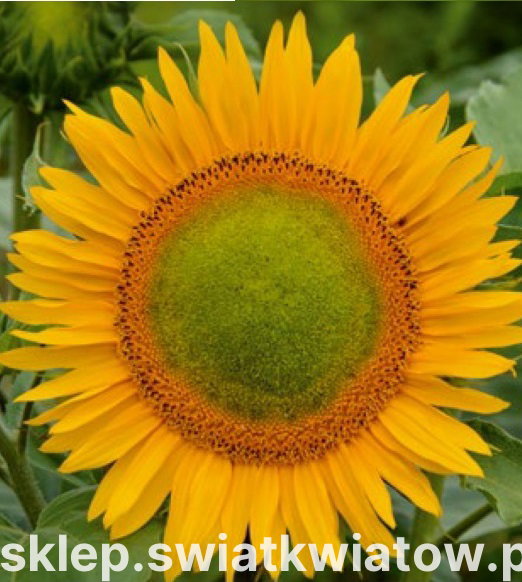 Kwiaty Polskie - Słonecznik Amor Amant (Helianthus annuus) to jedna z wysokich, ozdobnych odmian słonecznika. Mocne pędy dorastają do wysokości 100-120 cm. Latem na ich szczycie rozwija się dużych rozmiarów koszyczek kwiatowy, odmiana ta ma skłonność do tworzenia licznych bocznych pędów, na których z czasem rozwijają się kolejne kwiaty. Koszyczek kwiatowy wypełniony jest licznymi jasnymi kwiatami rurkowymi, które otaczają złotożółte, promieniście ułożone kwiaty języczkowe. Słoneczniki ze względu na swą wysokość nie są odpowiednie do małego ogrodu, choć można posadzić kilka sztuk na tyle rabaty lub przy ogrodzeniu. Słoneczniki można też uprawiać na kwiat cięty, gdyż bardzo dobrze utrzymują świeżość w wazonie.