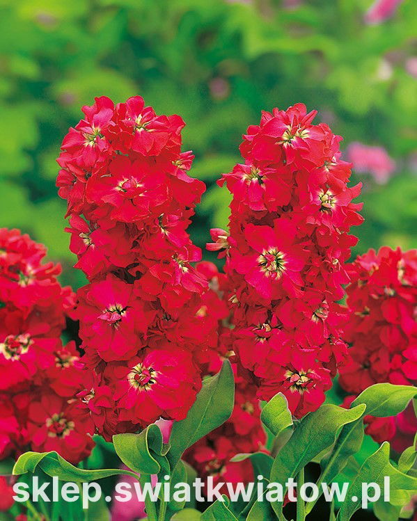 Lewkonia letnia 'Excelsior' kwitnie od czerwca do sierpnia, oferując długi okres dekoracyjności. Przez cały ten czas cieszy oko swoimi barwnymi kwiatostanami i subtelnym zapachem.