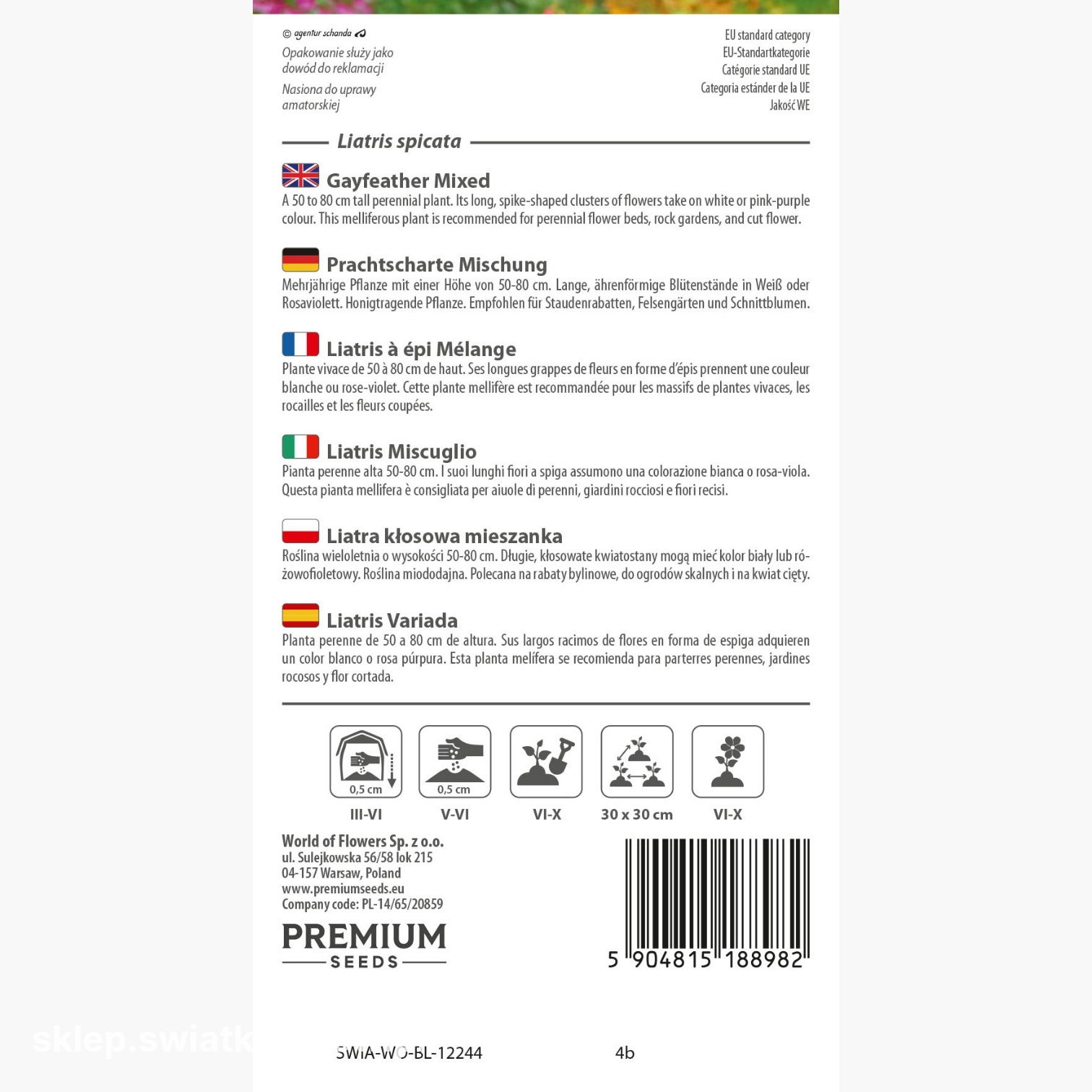 Zakup nasion liatry kłosowej w Sklepie Świat Kwiatów to gwarancja wysokiej jakości i satysfakcji. Nasze nasiona są starannie selekcjonowane i testowane, aby zapewnić najlepsze rezultaty uprawy. Sklep oferuje szybką dostawę i profesjonalne doradztwo, co potwierdzają liczne pozytywne opinie zadowolonych klientów. Zakupy w Świecie Kwiatów to bezpieczeństwo transakcji oraz pewność, że otrzymuje się produkt zgodny z opisem. Współpraca z nami to inwestycja w piękno ogrodu na lata.