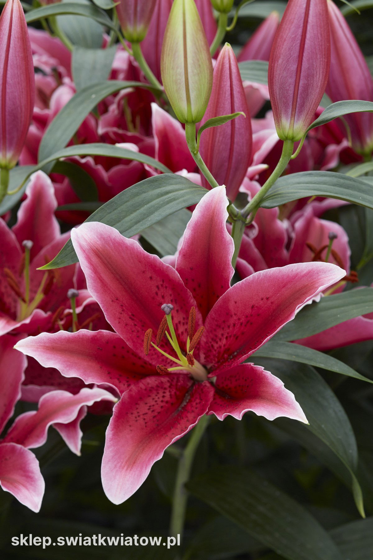 Lilia orientalna (Lilium) ‘Chartwell’ to wyjątkowo efektowna odmiana, która przyciąga uwagę zarówno imponującą wielkością kwiatów, jak i intensywnym zapachem. Okazałe kwiaty, osiągające nawet do 20 cm średnicy, zachwycają głębokim, bordowo-różowym kolorem z wyraźnym, jasnym obrzeżeniem płatków. Dekoracyjne kropki oraz kontrastujące pylniki dodatkowo podkreślają ich wyrazisty charakter. Odmiana słynie z mocnego, słodkiego aromatu o orientalnej nucie, szczególnie wyczuwalnego w letnie wieczory. Silne, wyprostowane pędy efektownie eksponują kwiatostany, czyniąc lilię ‘Chartwell’ wyrazistym akcentem w ogrodowych kompozycjach.