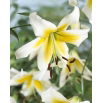 Lilia Mister Pistache (Lilium) stanowi propozycję dla ogrodników poszukujących dużej byliny o kwiatach w stonowanym kolorze. Ta nadzwyczaj bujna (150-200 cm wysokości) odmiana wytwarza okazałe, sześciopłatkowe, szeroko otwarte kielichy kwiatowe w kolorze mlecznobiałym ze złocistożółtym środkiem. Jej eleganckie kwiaty świetnie nadają się do wazonu, a na rabacie pięknie dopełnią kompozycję złożoną z roślin kwitnących na bardziej jaskrawe kolory. Lilia Mister Pistache rozwija pąki w drugiej połowie lata, może więc stanowić tło m.in. dla mniejszych odmian lilii, liliowców, kanny, rudbekii, słoneczniczków, jeżówek, astrów czy cynii.