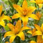 Lilia azjatycka 'Gold Twin' jest wyjątkowo atrakcyjną odmianą, która wyróżnia się intensywnie żółtymi, podwójnymi kwiatami, mającymi subtelne nuty pomarańczy, co nadaje im ciepły i zachęcający wygląd. Te pełne kwiaty, nie wytwarzające pyłków, są idealnym wyborem dla osób cierpiących na alergie, umożliwiając im cieszenie się pięknem 'Gold Twin' bez obaw o kichanie czy łzawienie oczu.