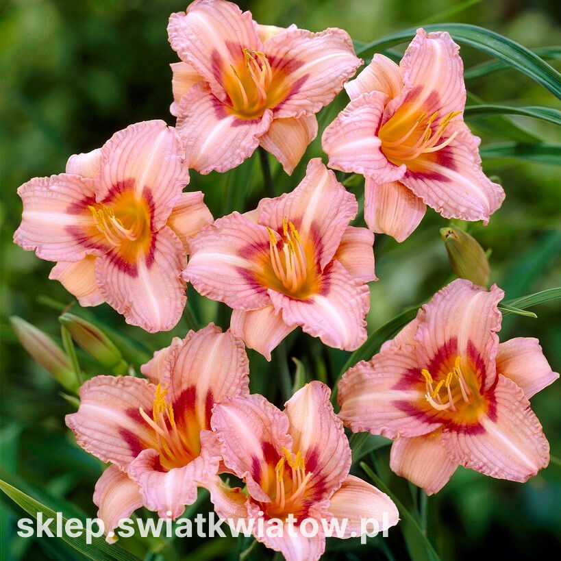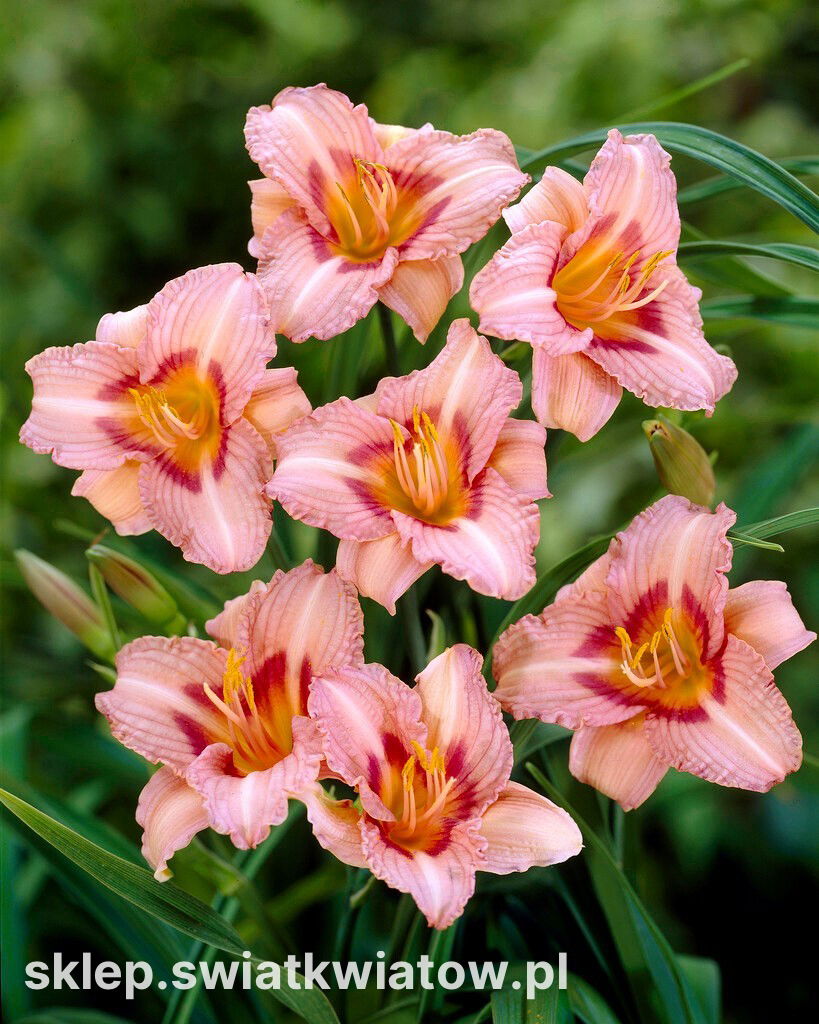 Liliowiec Longfields Glory to oryginalna, niezawodnie kwitnąca odmiana. Jest to bylina o wachlarzach, długich, wąskich, rynienkowatych liści. Różowe kwiaty z ciemniejszym okiem, które otacza złocistożółte gardło są podzielone na 6 płatków. Na brzegu szerszych z nich, znajdujących się bliżej zakrzywionych do góry pręcików, znajduje się subtelna falbanka. Prezentowana odmiana dorasta do 45 cm. Umiarkowany wzrost warto wykorzystać do obsadzania fronty rabaty, krańców trawnika lub skrzyń na balkonie. Słodko wyglądający liliowiec to fenomenalna dekoracja, łatwo dająca się wkomponować do wielu stylów ogrodowych. Ceniony za wytrzymałość, szybkie możliwości regeneracyjne i niepowtarzalne piękno kwiatów Longfields Glory przez długie lata udekoruje ogród lub działkę, zakwitając w środku lata.