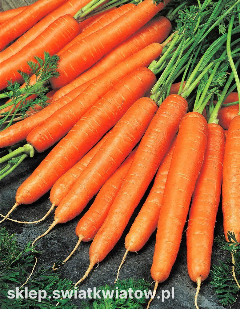 Marchew Olympus to późna odmiana typu Flakkee o znakomitych walorach smakowych i użytkowych. Tworzy długie, proste korzenie do 26 cm, intensywnie ciemnopomarańczowe, bez tendencji do zazieleniania części wierzchołkowej. Miąższ jest słodki, jędrny i soczysty, dzięki czemu odmiana świetnie nadaje się na soki, do przetworów i dań codziennej kuchni. Bardzo dobra trwałość przechowalnicza pozwala korzystać z plonu także w miesiącach zimowych.