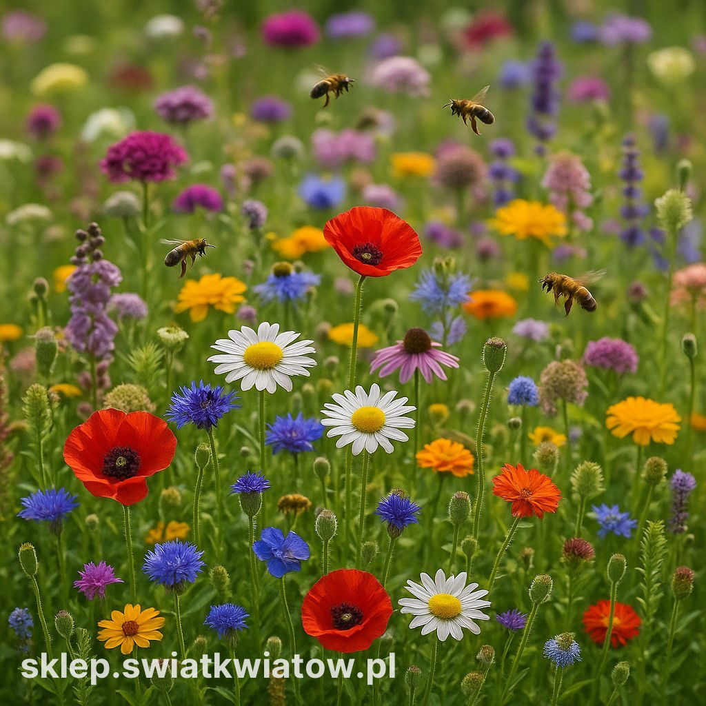Mieszanka zawiera różnorodne gatunki miododajne, m.in. goździka brodatego, aksamitkę, koniczynę białą, jeżówkę, szałwię, nachyłek, rumianek, mak polny, facelię, chabra bławatka czy nagietek. Tworzy kolorową i pachnącą łąkę, która wspiera pszczoły, trzmiele i motyle, a przy okazji zdobi ogród naturalnym pięknem.