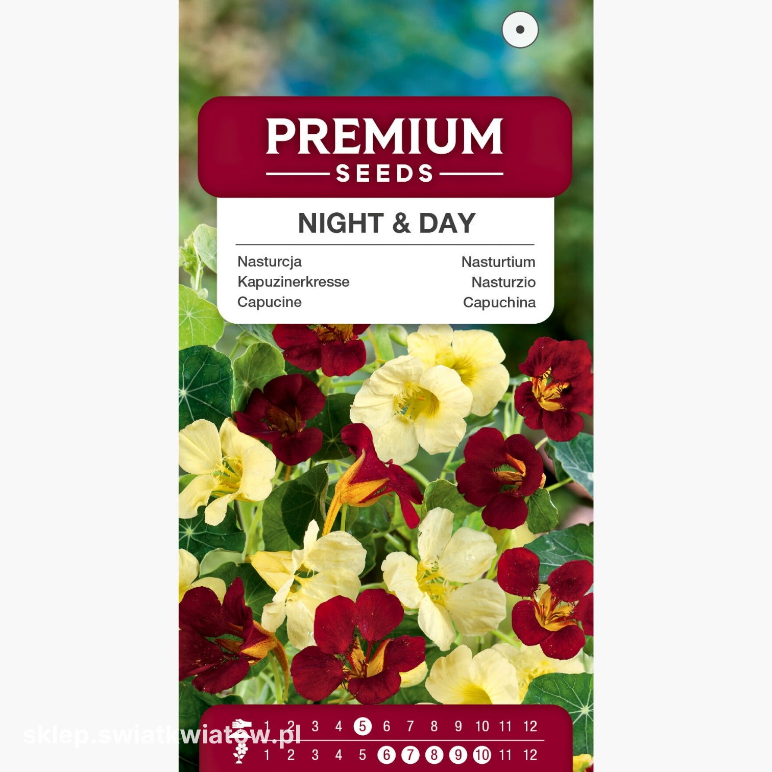 Okres kwitnienia nasturcji niskiej Night & Day trwa od czerwca aż do października. Przez całe lato i jesień rośliny obsypane są kolorowymi kwiatami, które doskonale komponują się z innymi gatunkami ozdobnymi. Ich niepowtarzalne barwy dodają ogrodowi elegancji i ciepła, przyciągając spojrzenia każdego, kto obok nich przechodzi.
