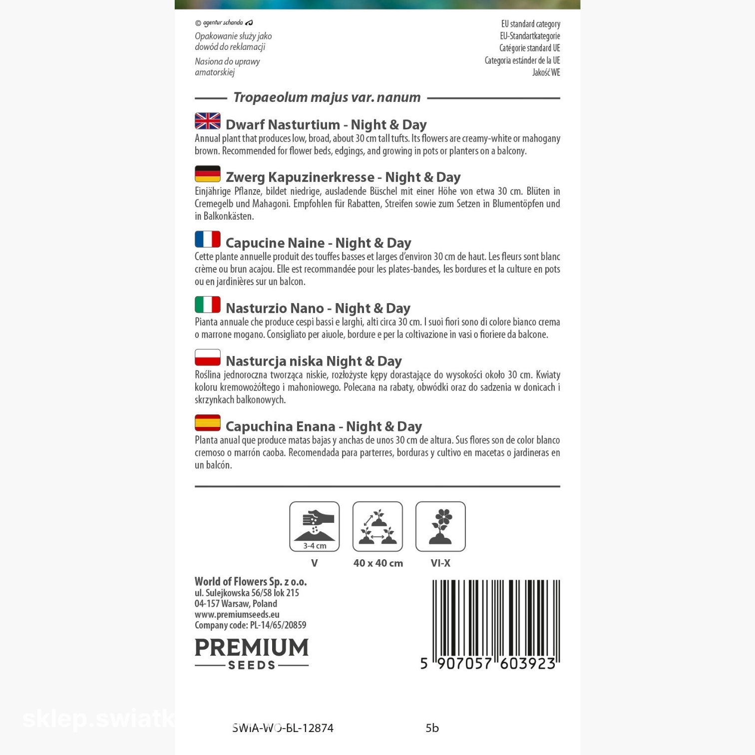 Sklep Świat Kwiatów gwarantuje najwyższą jakość nasion i pełne zadowolenie z zakupu. Każda partia jest starannie selekcjonowana i testowana w warunkach laboratoryjnych, co zapewnia ich doskonałą zdolność kiełkowania. Szybka, bezpieczna wysyłka sprawia, że nasiona trafiają do Ciebie w idealnym stanie, gotowe do wysiewu. Zespół sklepu to pasjonaci ogrodnictwa - chętnie doradzają na każdym etapie, pomagając dobrać najlepsze rośliny do Twojego ogrodu. Wybierając Świat Kwiatów, zyskujesz nie tylko sprawdzone nasiona, ale i pewność udanej, pełnej satysfakcji uprawy.