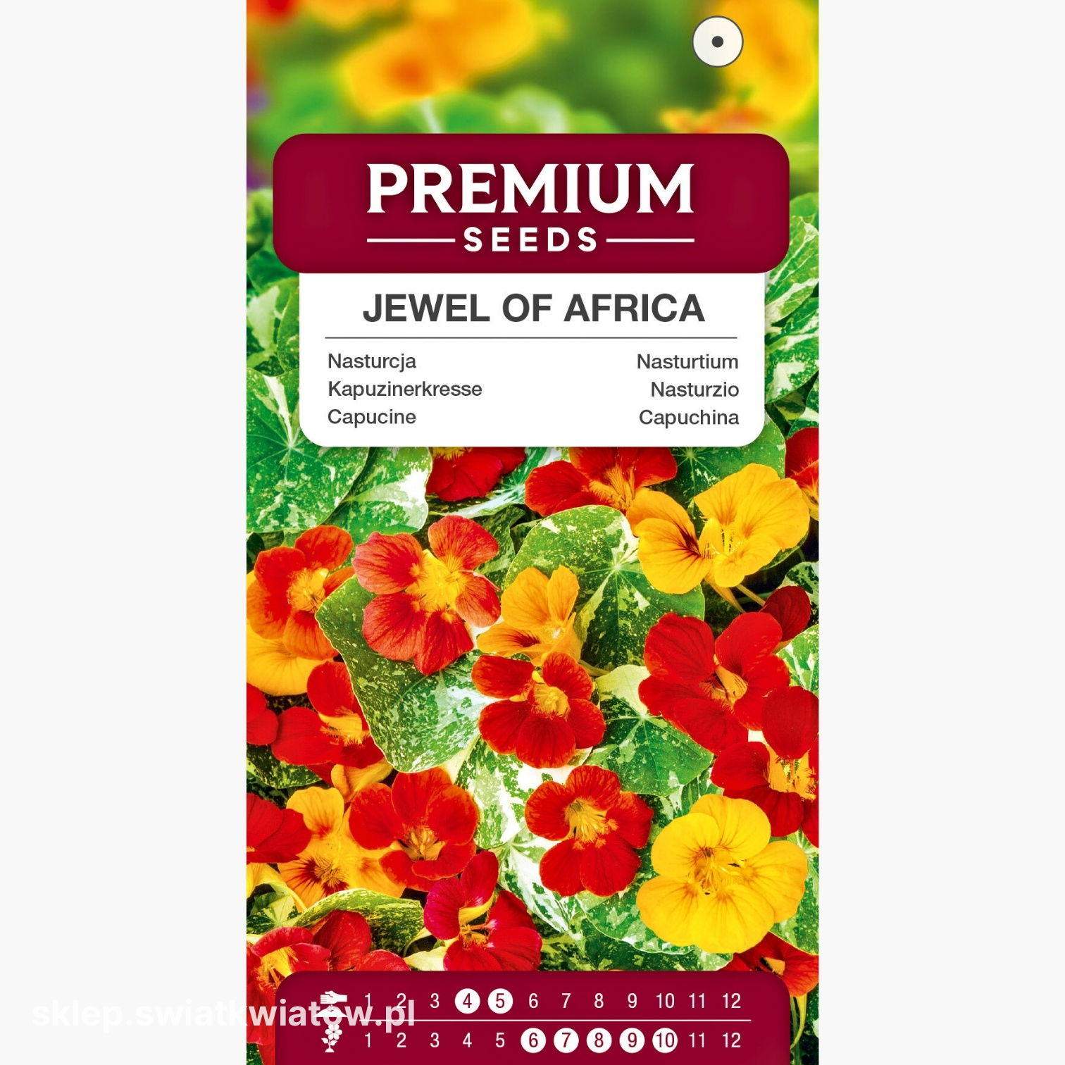 Nasturcja Jewel of Africa kwitnie długo i obficie - od czerwca aż do października. Przez całe lato aż do pierwszych jesiennych chłodów roślina emanuje kolorem, a każdy dzień przynosi nowy, świeży kwiat. Dzięki temu ogród zachowuje swój urok przez wiele miesięcy.