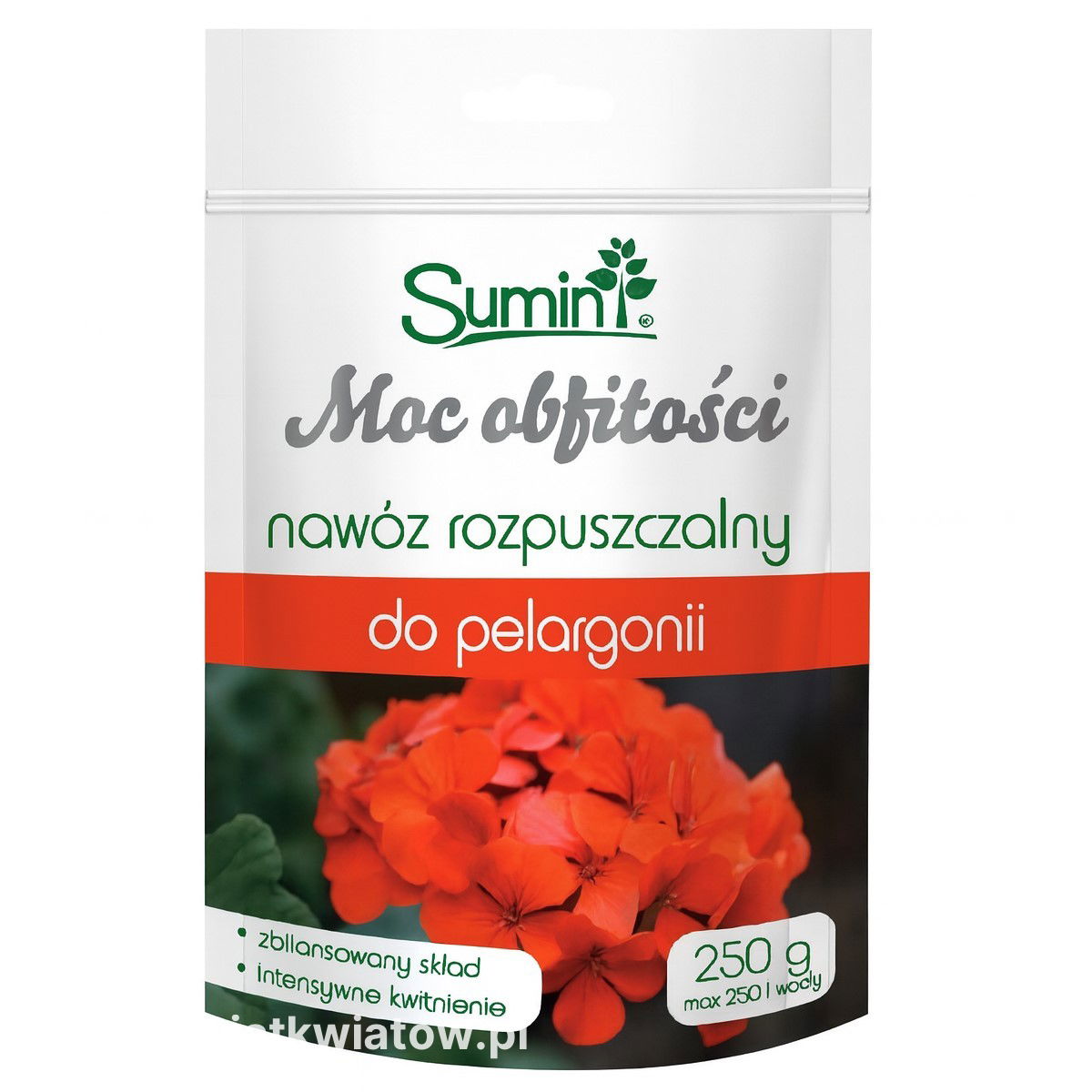 Nawóz rozpuszczalny do pelargonii, werbeny i innych balkonowych - Moc obfitości - Sumin - 250 g
