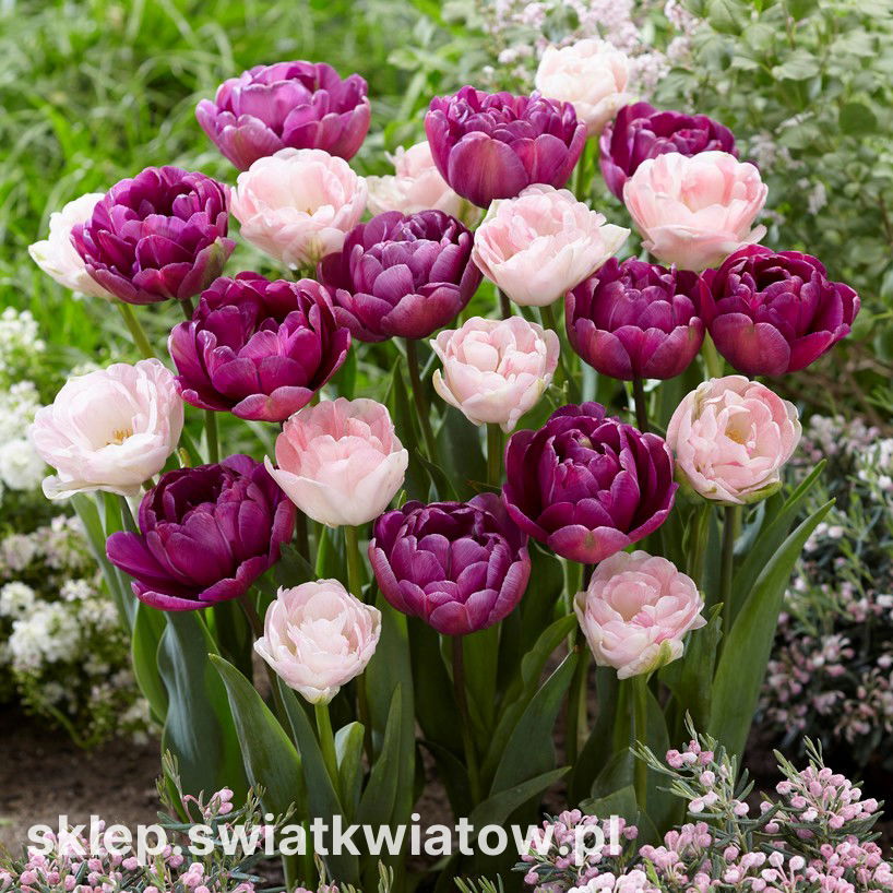Nuta tajemnicy - zestaw tulipanów pełnych w odcieniu jasnoróżowym i fioletowym - 40 szt.