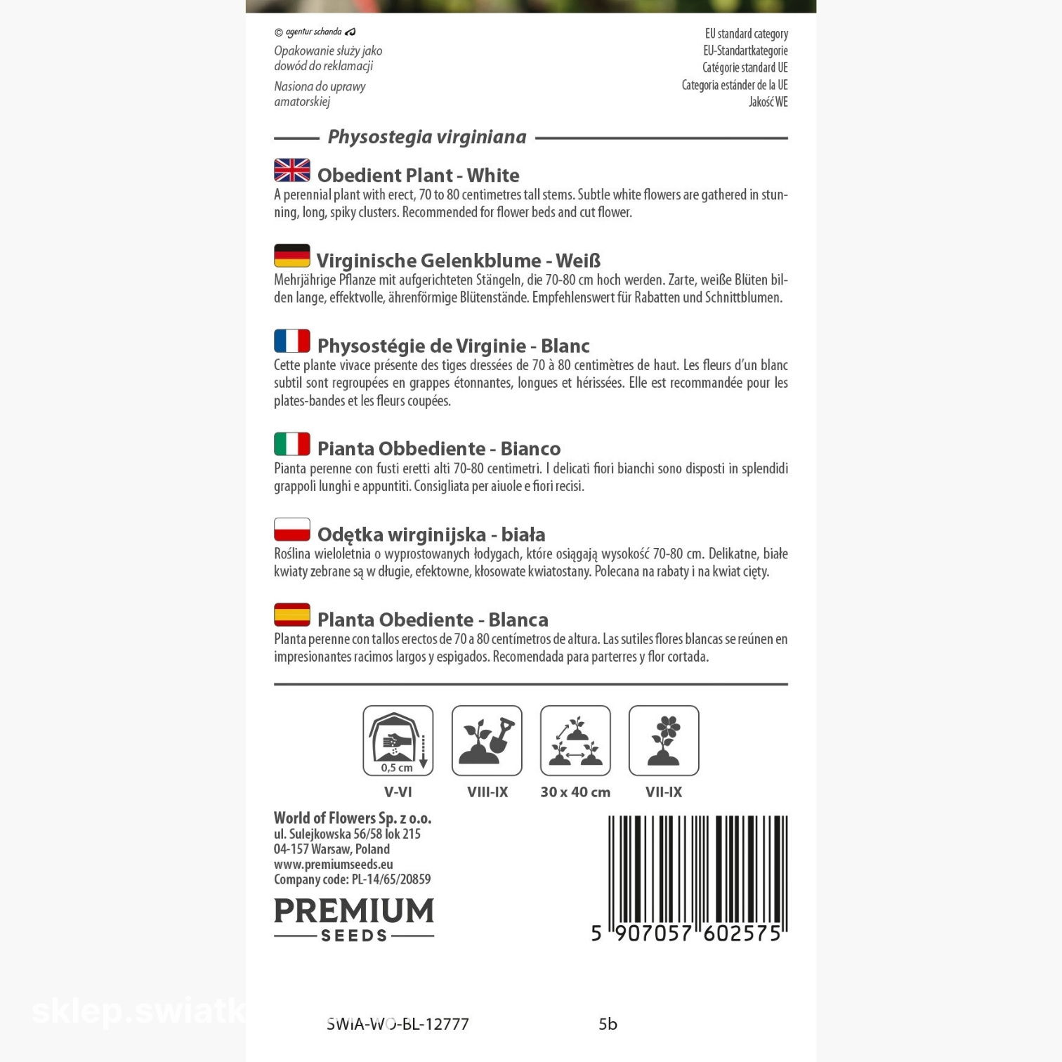 Opakowanie zawiera 0,1 g nasion. Na opakowaniu znajdziesz informacje o zasadach uprawy i terminie przydatności do wysiewu.
