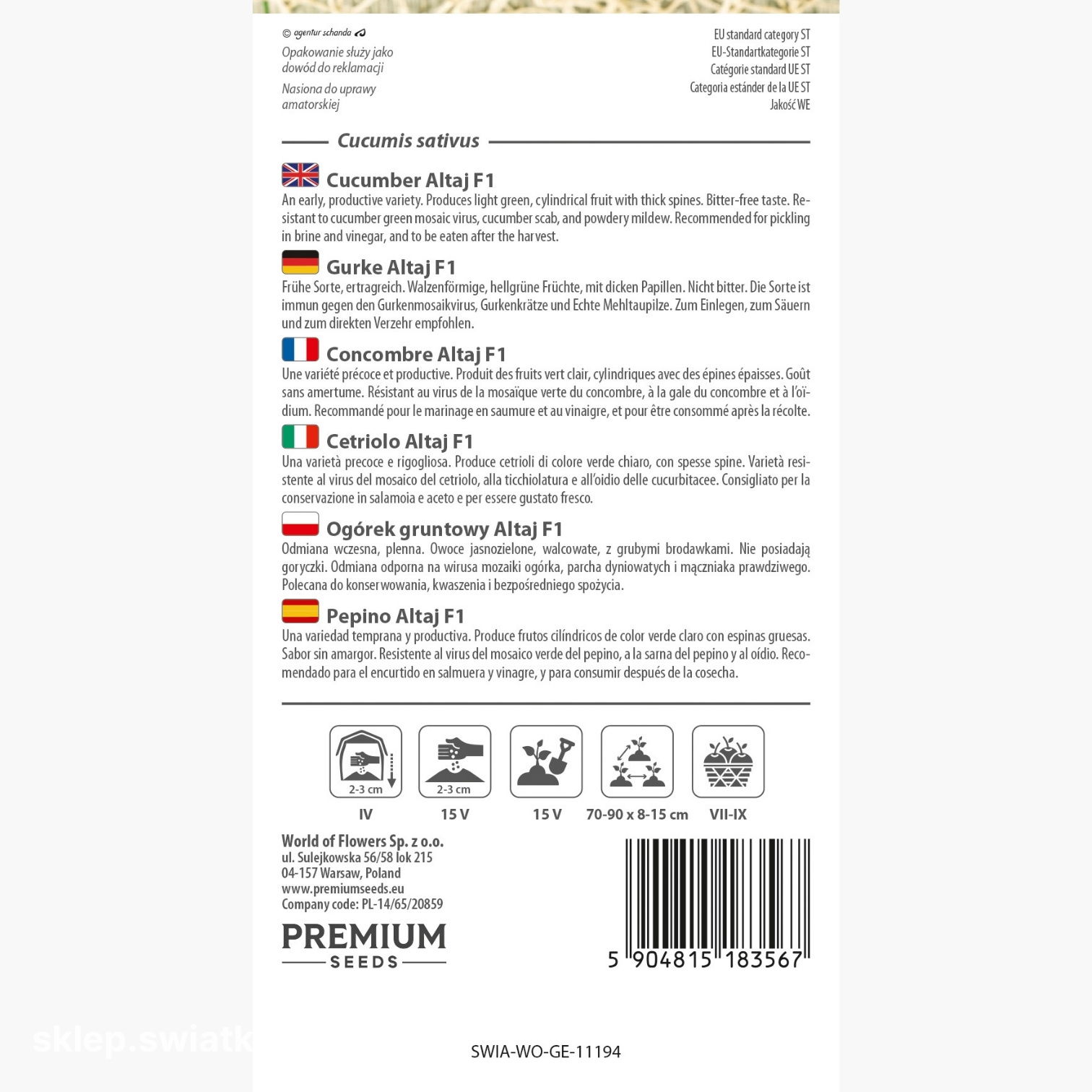 Ogórek Altaj F1 to wczesna, wyjątkowo plenna odmiana, której owoce wyróżniają się walcowatym kształtem, jasnozieloną skórką i brakiem goryczki. Owoce pokryte są dużymi, rzadkimi brodawkami i nie mają tendencji do przerastania, dzięki czemu przez cały okres zbiorów zachowują wysoką jakość. Altaj F1 doskonale sprawdza się zarówno do bezpośredniego spożycia, jak i do kwaszenia oraz konserwowania. Uprawa nie sprawia trudności, a przy odpowiednich warunkach pierwsze owoce można zbierać już pod koniec czerwca.