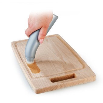 Prezentowany olej jest zamknięty w bardzo wygodnej butelce z gąbkowym aplikatorem. Wystarczy raz na 2-3 tygodnie nanieść cienką warstwę na całą powierzchnię deski, dokładnie rozprowadzając olej. Drewnianych desek nigdy nie należy myć w zmywarce. Po produktach suchych np. pieczywie wystarczy je dokładnie wytrzeć z okruchów.