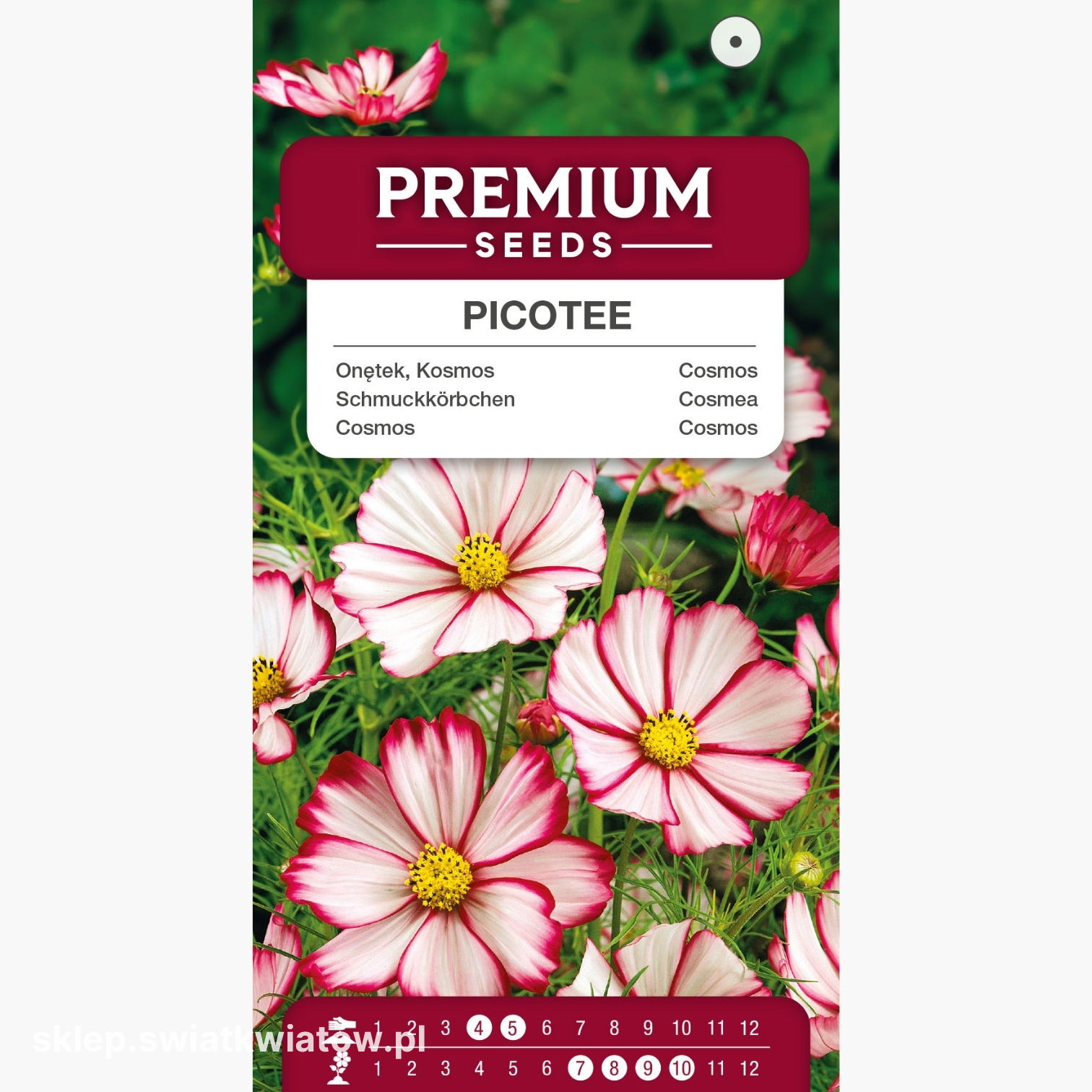 Onętek Kosmos Sensation wysoki - Picotee to kwiat jednoroczny, który zachwyca swoją urodą i delikatnością. Roślina osiąga wysokość od 80 do 100 cm, co sprawia, że jest idealnym dodatkiem do kolorowych rabat, łąk kwiatowych oraz jako kwiat cięty do wazonów. Jej krzaczasty pokrój w połączeniu z jasnozielonymi, mocno powcinanymi liśćmi tworzy efektowną dekorację każdego ogrodu. Kwiaty o białej barwie z różową obwódką dodają subtelnego uroku i przyciągają wzrok, wprowadzając romantyczną atmosferę. Dzięki badaniom laboratoryjnym nasiona onętka charakteryzują się wysoką jakością, co gwarantuje ich niezawodność i satysfakcję z uprawy.