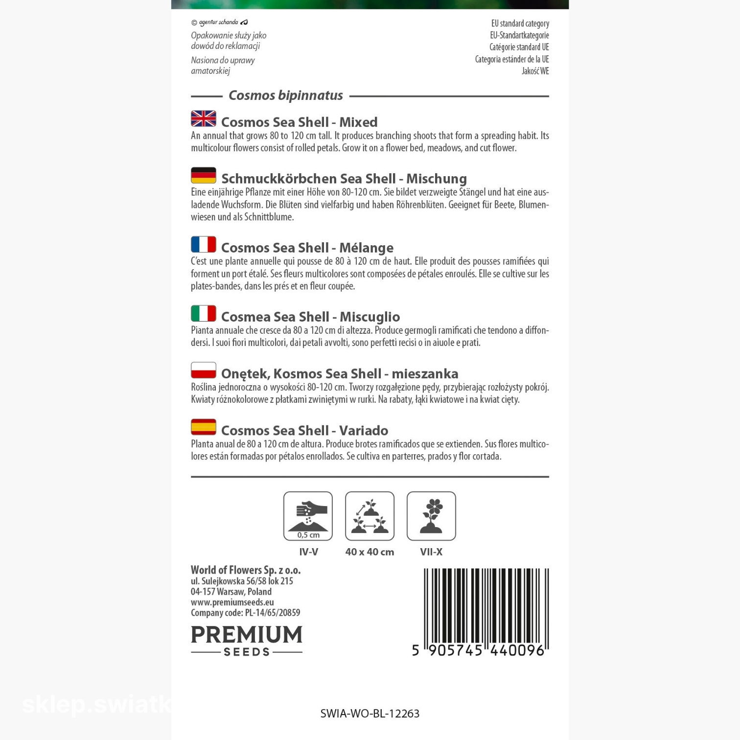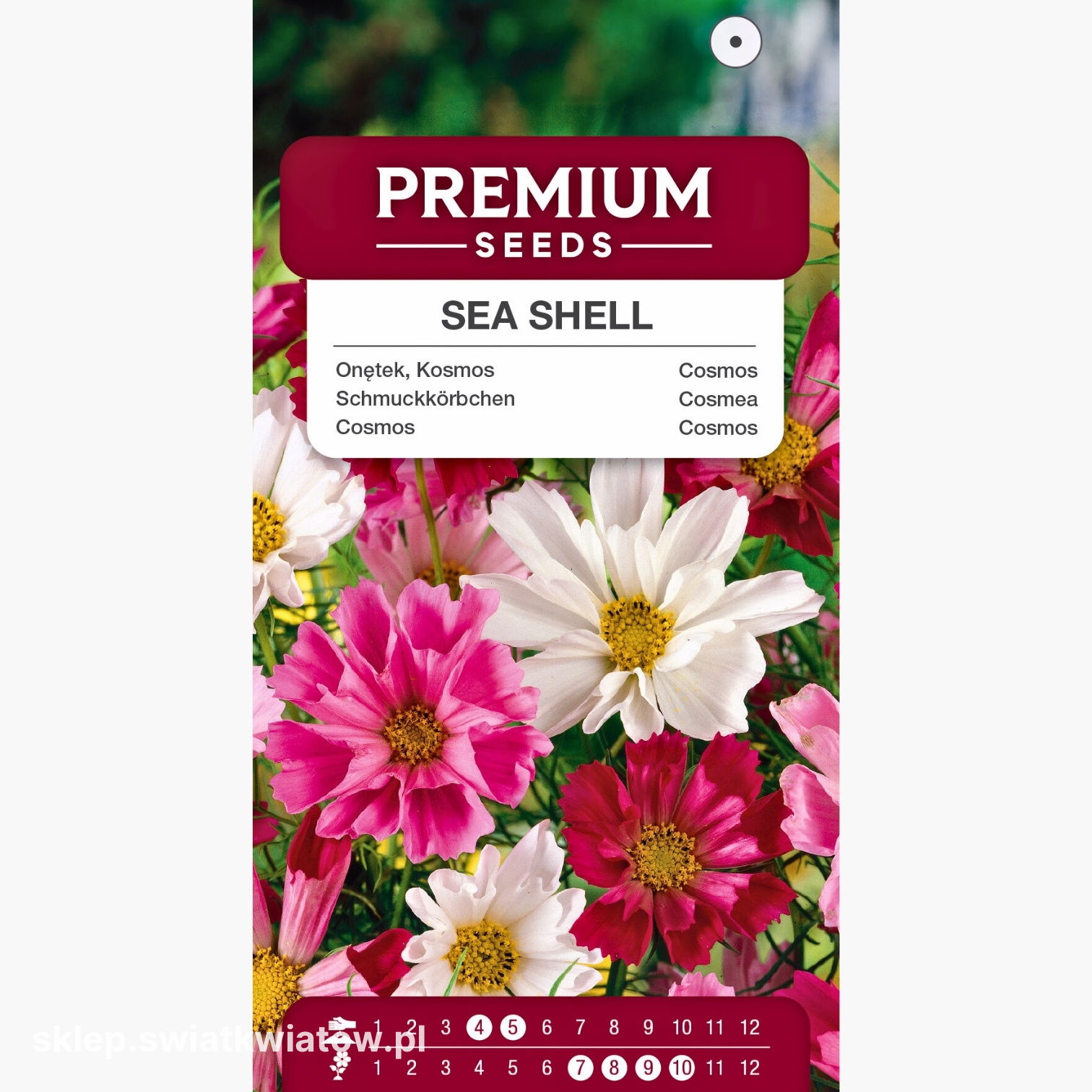 Kosmos, Onętek Sea Shell to jednoroczna roślina ozdobna, która zachwyca niepowtarzalnymi kwiatami o płatkach zwiniętych w delikatne rurki. Różnorodność barw tej mieszanki wprowadza do ogrodu lekkość i naturalny urok. Roślina osiąga wysokość 80-120 cm, tworząc okazałe, rozgałęzione pędy, które świetnie prezentują się zarówno na rabatach, jak i w naturalistycznych kompozycjach. Onętek Sea Shell doskonale nadaje się również na kwiat cięty, długo zachowując świeżość w wazonach.