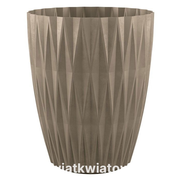 Produkt wykonano z wysokogatunkowego tworzywa sztucznego, które charakteryzuje się odpornością na pęknięcia oraz wpływ wilgoci. Gładka powierzchnia osłonki ułatwia usuwanie kurzu, a kolor cappuccino pozostaje trwały nawet przy ekspozycji na światło. Kluczową zaletą modelu Caro Petit jest wysokość wynosząca 15,5 cm, która pozwala na całkowite ukrycie brzegów doniczki produkcyjnej, podnosząc estetykę całej kompozycji. Lekkość konstrukcji umożliwia łatwe przenoszenie roślin bez ryzyka uszkodzenia mebli.