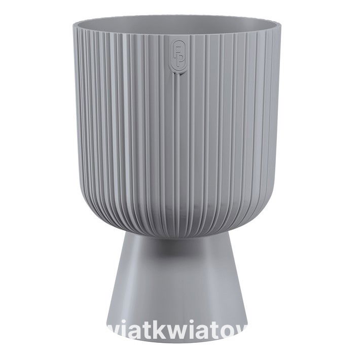 Tworzywo sztuczne użyte do produkcji jest lekkie, a zarazem bardzo trwałe. Platynowe wykończenie nadaje produktowi ekskluzywnego wyglądu, zachowując jednocześnie odporność na wilgoć typową dla akcesoriów roślinnych. Pionowe prążki maskują drobne zanieczyszczenia, a stabilna podstawa chroni powierzchnię mebli przed bezpośrednim kontaktem z dnem doniczki.
