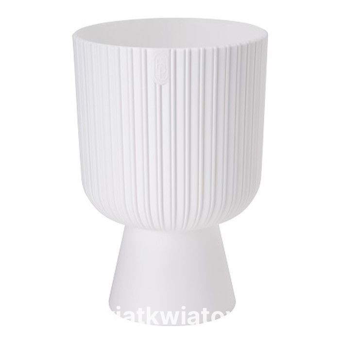 Dzięki zastosowaniu wytrzymałego tworzywa sztucznego osłonka jest odporna na pęknięcia i zarysowania. Gładka, biała powierzchnia jest łatwa w utrzymaniu, a pionowe prążkowanie nadaje jej unikalnego charakteru. Wysokość 26,5 cm zapewnia stabilność nawet dla roślin o obfitym ulistnieniu, a uniesiona forma zapobiega przegrzewaniu się bryły korzeniowej na nasłonecznionych parapetach.