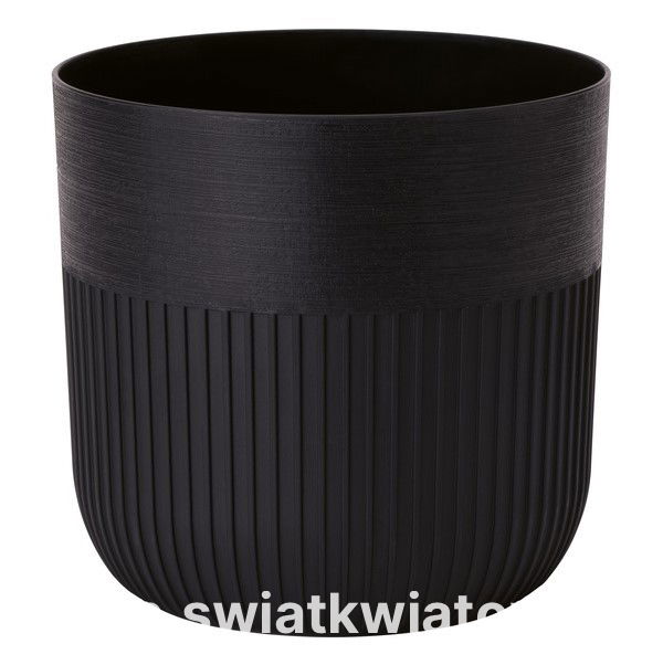 Osłonka okrągła Luca Petit w kolorze głębokiej czerni to wyrazisty element dekoracyjny, który przyciąga wzrok dzięki unikatowej strukturze pionowych pasów. Zdecydowana kolorystyka podkreśla nowoczesny charakter produktu, tworząc luksusowy kontrast dla zieleni roślin domowych. Matowe wykończenie oraz regularne żłobienia nadają oprawie wyjątkowy styl, który doskonale uzupełnia współczesne, industrialne wnętrza.