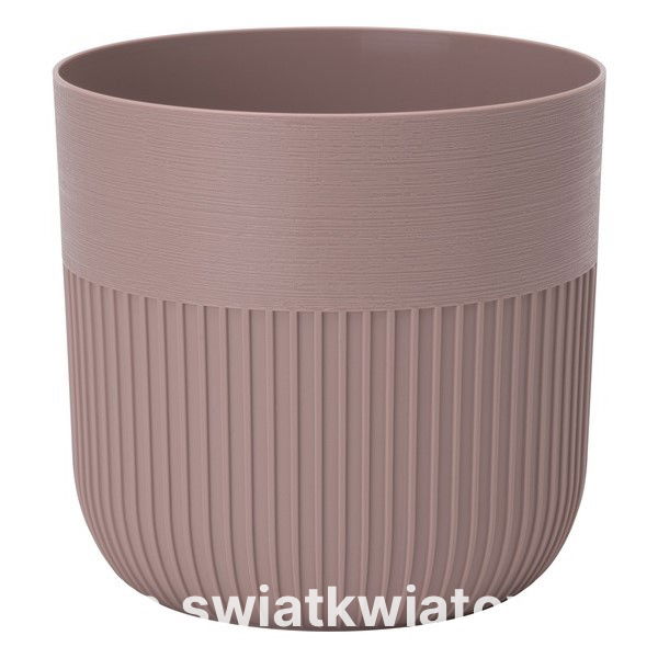 Osłonka została wykonana z materiału odpornego na wpływ wilgoci oraz uszkodzenia mechaniczne. Strukturalna powierzchnia ułatwia czyszczenie, a ciepły kolor pozostaje trwały i nie blaknie pod wpływem słońca. Precyzyjne pionowe pasy dodają konstrukcji stabilności wizualnej, a optymalne wymiary pozwalają na estetyczne dopasowanie osłonki do standardowych doniczek produkcyjnych o średnicy około piętnastu centymetrów.