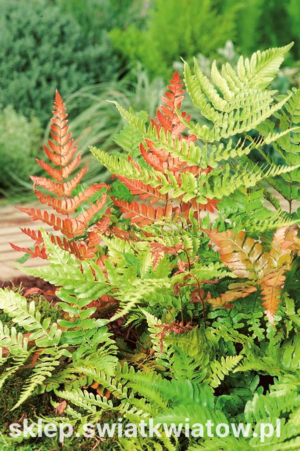 W zestawie znajduje się 50 sadzonek paproci ogrodowej - Brillance Autumn w doniczce P9.