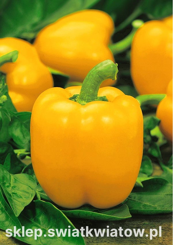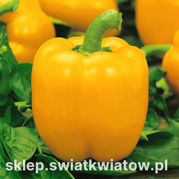 Papryka Yellow California Wonder to odmiana wyróżniająca się intensywnie żółtym kolorem i słodkim, delikatnym smakiem. Tworzy dorodne, średniej wielkości owoce z grubą, mięsistą ścianką o grubości 6-7 mm. Owoce dojrzewają równomiernie i obficie, dzięki czemu odmiana dobrze prezentuje się zarówno w uprawie, jak i po zbiorze. To doskonały wybór dla ogrodników poszukujących odmiany łatwej w uprawie, a jednocześnie niezwykle smacznej.
