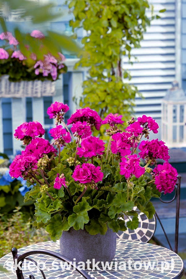 Aby z dumą zaprezentować pelargonię fioletową na swoim balkonie lub parapecie, jej nasiona najlepiej wysiać już na przedwiośniu pod szkłem, w miejscu ze stałą, dość wysoką temperaturą. Młode rośliny wymagają pikowania, a do osobnych doniczek można je przesadzić w maju. Po zahartowaniu warto skrzynkę lub misę z intensywnie rosnącymi pelargoniami wynieść na balkon, taras lub do ogrodu, na stanowisko zaciszne i słoneczne. W przepuszczalnej, żyznej, próchnicznej ziemi do kwiatów oferowana odmiana będzie kwitła niezłomnie i szczodrze od maja aż do października. Czarująco zaprezentuje się także na kwietniku lub rabatce, np. w towarzystwie drobnokwiatowej lobelii, szałwii błyszczącej, grzebionatki albo koleusa o tęczowych liściach.