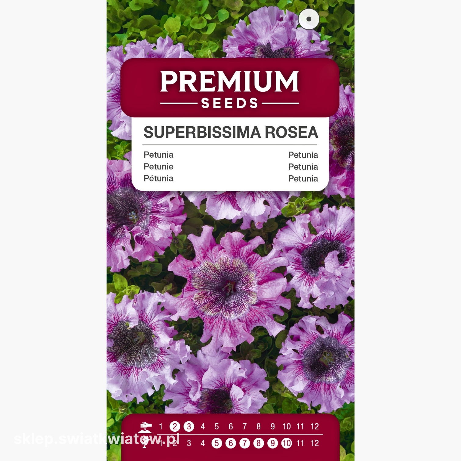 Petunia Superbissima Rosea to jednoroczna odmiana wyróżniająca się wyjątkowo dużymi, różowymi kwiatami o średnicy dochodzącej do 16 cm. Faliste, lekko postrzępione płatki nadają im charakterystyczny wygląd i sprawiają, że roślina mocno zwraca uwagę w pojemnikach i na rabatach. Roślina ma wzniesiony, umiarkowanie rozgałęziony pokrój i przez cały sezon zachowuje wyraźne walory dekoracyjne. Nie wymaga skomplikowanych zabiegów uprawowych, co czyni ją praktycznym wyborem do uprawy balkonowej i ogrodowej.