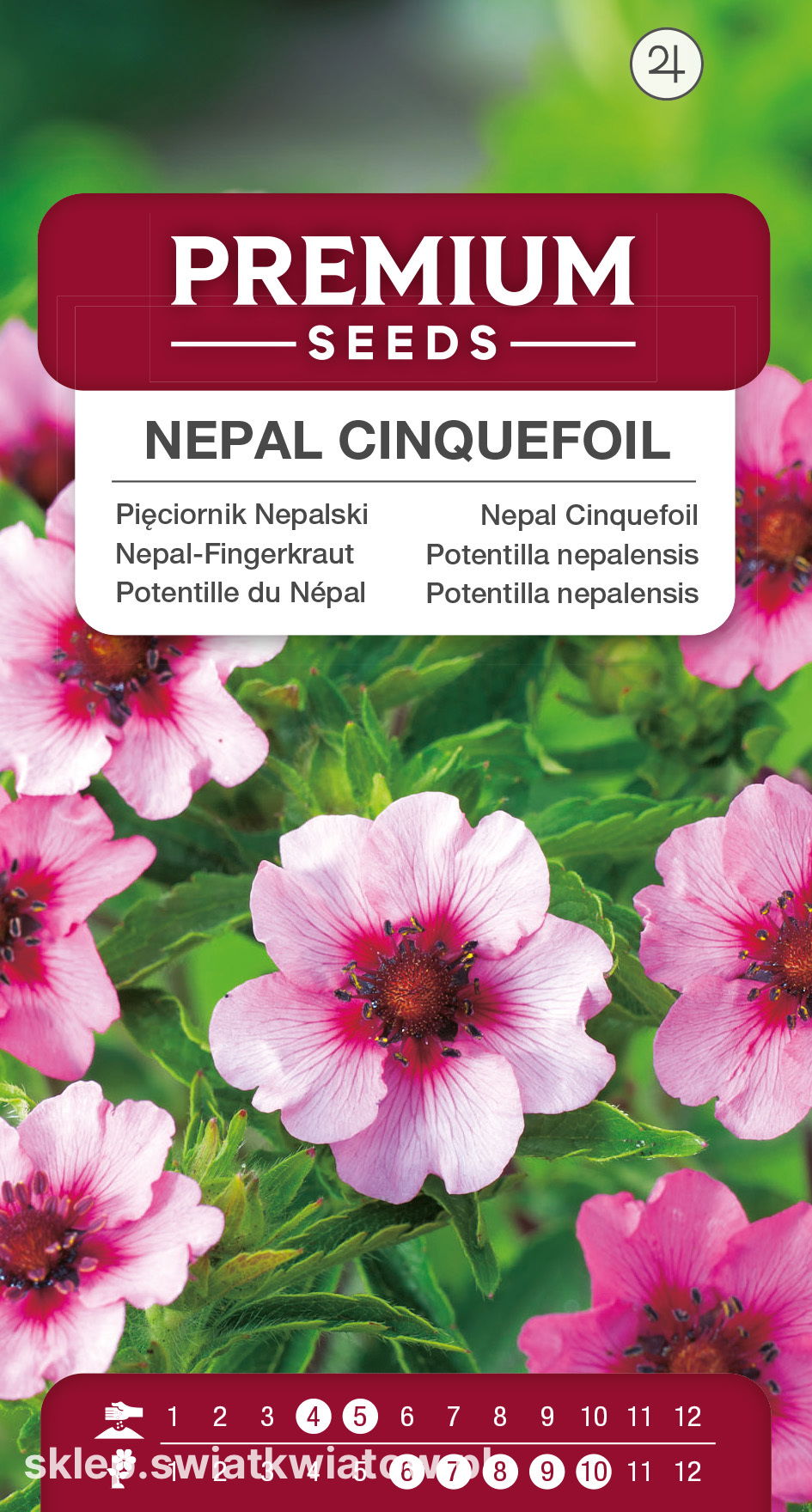Pięciornik Nepalski jest byliną o lekko pokładających się pędach oraz pięknych dużych kwiatostanach średnicy około 4 centymetrów. Pięciornik kwitnie od połowy czerwca do końca października w drugim roku uprawy. Doskonała roślina na rabaty bylinowe i do uprawy w grupach.