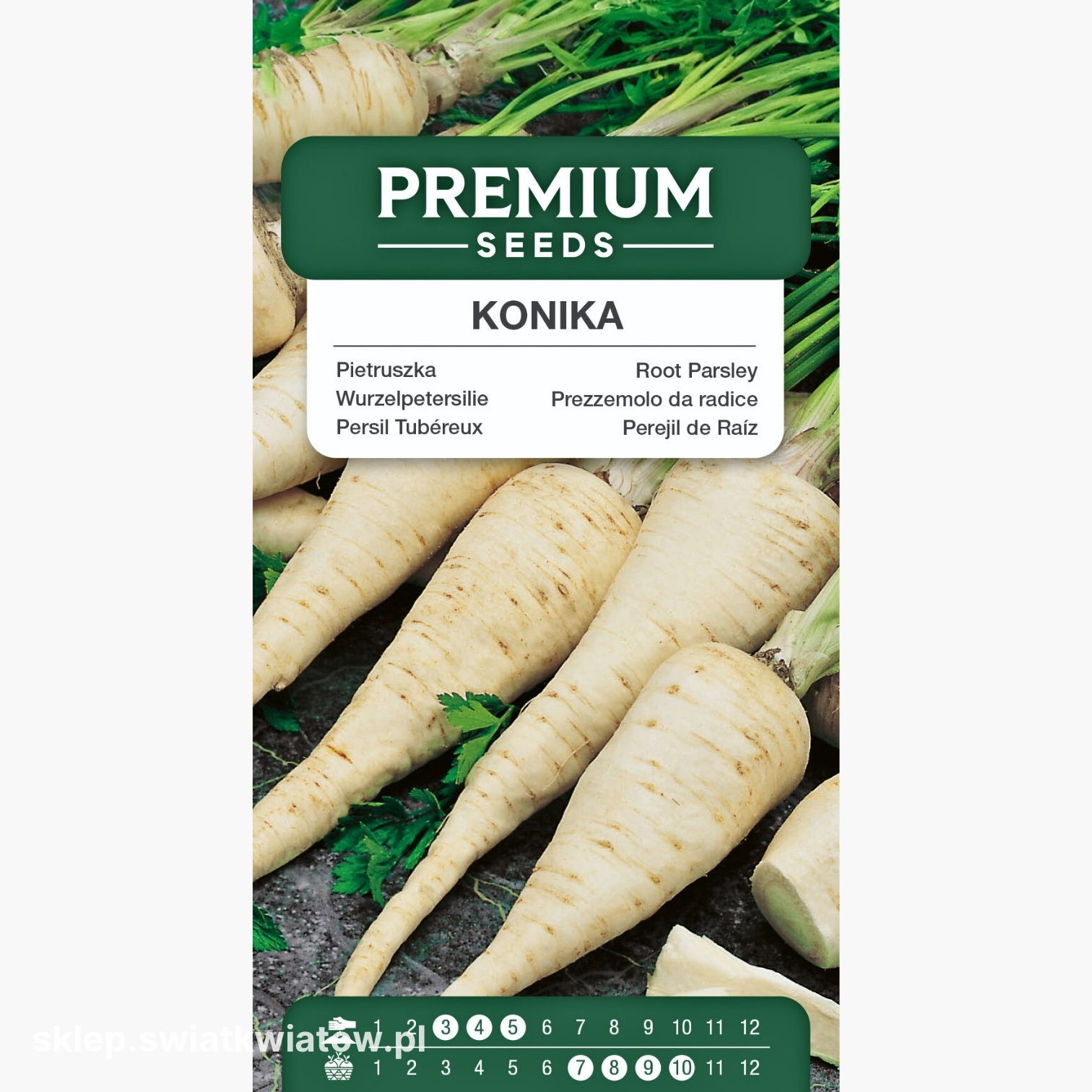 Pietruszkę Konika zbiera się od lipca do października. Wczesny zbiór pęczkowy pozwala cieszyć się świeżymi, aromatycznymi korzeniami, podczas gdy późniejszy zbiór umożliwia ich przechowywanie na zimowe miesiące.