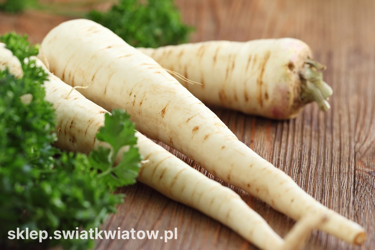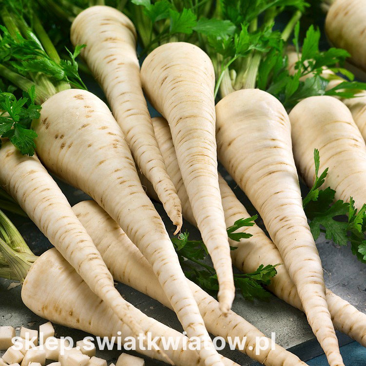 Pietruszka Lenka Ożarowska - aromatyczny miąższ (Petroselinum crispum) odmiana na zbiór średnio późny, okres od siewu do zbioru wynosi 160-180 dni. Korzenie idealne do bezpośredniego spożycia, nadają się również do długiego przechowywania, podczas którego nie tracą jakości. Korzenie mają ładny kształt, równomiernie zwężają się ku końcowi. Osiągają średnią długość 22-24 cm i masę 150-180 g. Miąższ o pięknym białokremowym kolorze zwarty i jędrny, odznacza się wysokimi walorami smakowymi i bogatym aromatem. Skórka gładka i kremowa. Korzeń pietruszki zawiera flawonoidy o właściwościach antyoksydacyjnych, jest bogaty w witaminy oraz niezbędne dla naszego organizmu makro- i mikroelementy. Pietruszki są doskonałym składnikiem zup, sałatek i dań mięsnych oraz warzywnych.