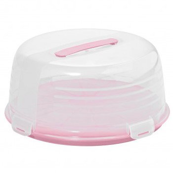 Okrągły pojemnik na ciasto jest idealny do przechowywania i transportu tortów, serników, tart i babek. Składa się z kolorowej podstawy i transparentnej pokrywy zamykanej na 4 mocne klipsy. Na wierzchu pokrywy znajduje się uchwyt dla wygodnego przenoszenia pojemnika. Na postawie delikatna faktura z podziałką na 12 równych części, bardzo przydatna w trakcie krojenia ciasta. Pojemnik jest bardzo praktyczny i poręczny. Spokojnie możemy spakować do niego przekąski na działkę czy piknik za miastem.