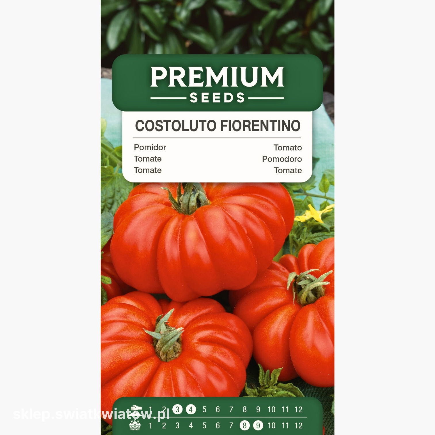 Pomidor Costoluto fiorentino to włoska odmiana, która zachwyca swoim unikalnym wyglądem i doskonałym smakiem. Charakterystyczne, mocno żebrowane owoce o intensywnie czerwonej barwie doskonale prezentują się na talerzu, dodając elegancji każdej potrawie. Idealny do uprawy zarówno w gruncie, jak i pod osłonami, gwarantuje obfite plony od sierpnia do września. To odmiana wczesna, ceniona przez ogrodników za wysoką jakość i niezawodność w każdych warunkach. Dzięki temu pomidorowi, każda kanapka, sałatka czy sos nabierze wyjątkowego smaku i aromatu.