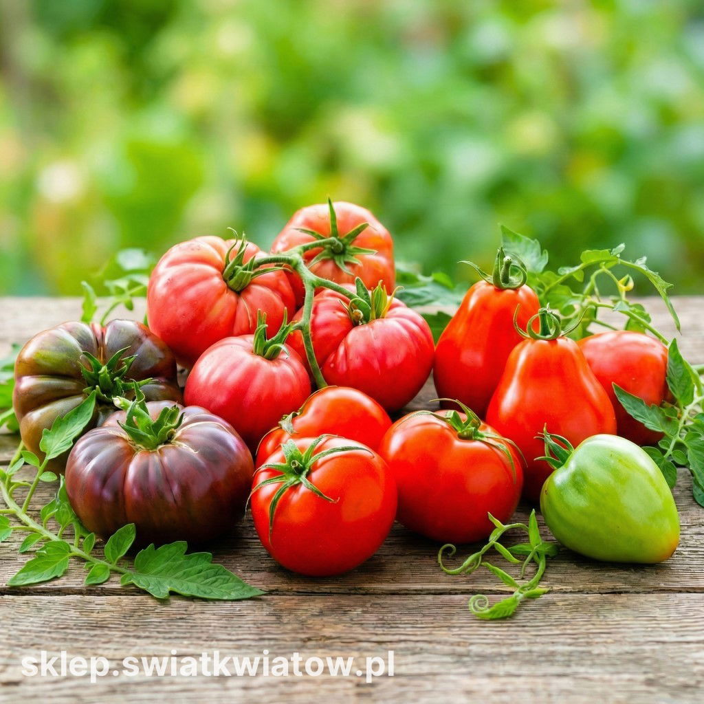 W skład zestawu wchodzi 5 odmian nasion pomidora wysokiego: Noire de Crimee; Adam F1; Red Pear; Moneymaker; Cuor di Bue.