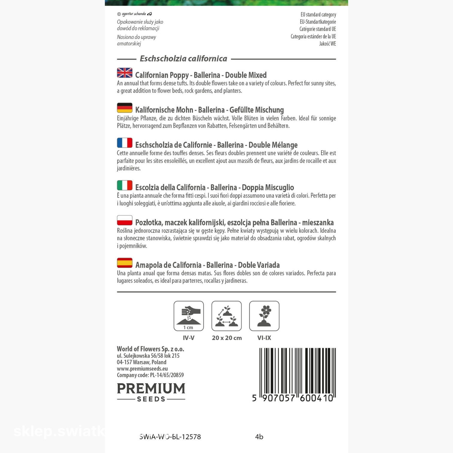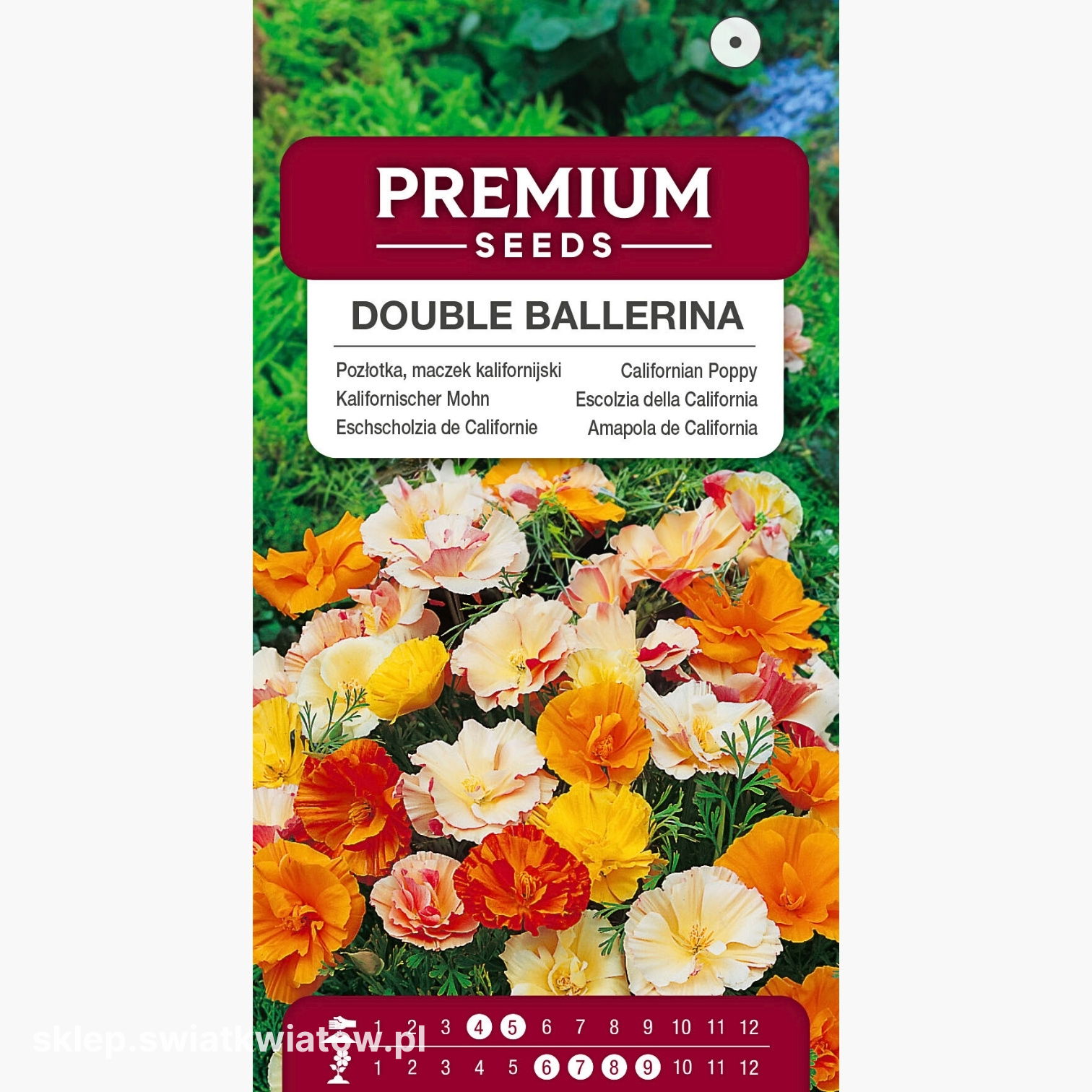 Pozłotka, eszolcja pełna Ballerina (Eschscholtzia californica) mimo subtelnego, zwiewnego wyglądu, wyróżnia się dużą odpornością na trudne warunki uprawy. Ta jednoroczna roślina dorasta do około 30 cm wysokości, a jej proste, mocno rozgałęzione pędy pokrywają drobne, zielone, postrzępione liście, które dodatkowo podkreślają jej subtelny charakter. Jedwabiste, cienkie płatki tworzą efektowne, pełne kwiaty o imponującej średnicy dochodzącej nawet do 7 cm. Mieszanka Ballerina oferuje szeroką paletę barw, od kremowej, przez różową, żółtą, pomarańczową, aż po intensywną czerwień, dzięki czemu każda rabata zyskuje niepowtarzalny charakter.