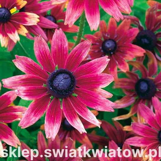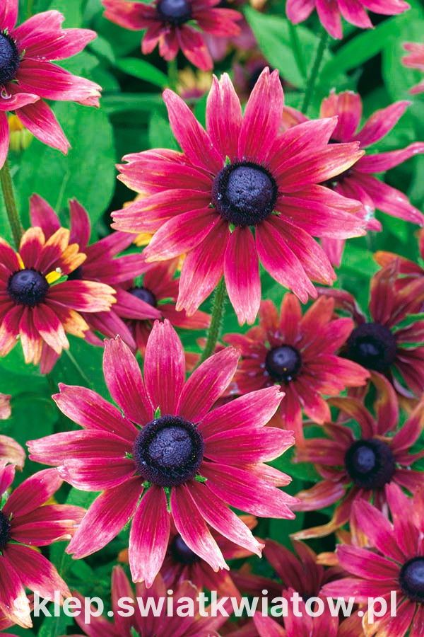Zestaw dotyczy 50 sztuk sadzonek Rudbekii Cherry Brandy. Na etykiecie produktu zostały podane podstawowe informacje o roślinie i jej uprawie.