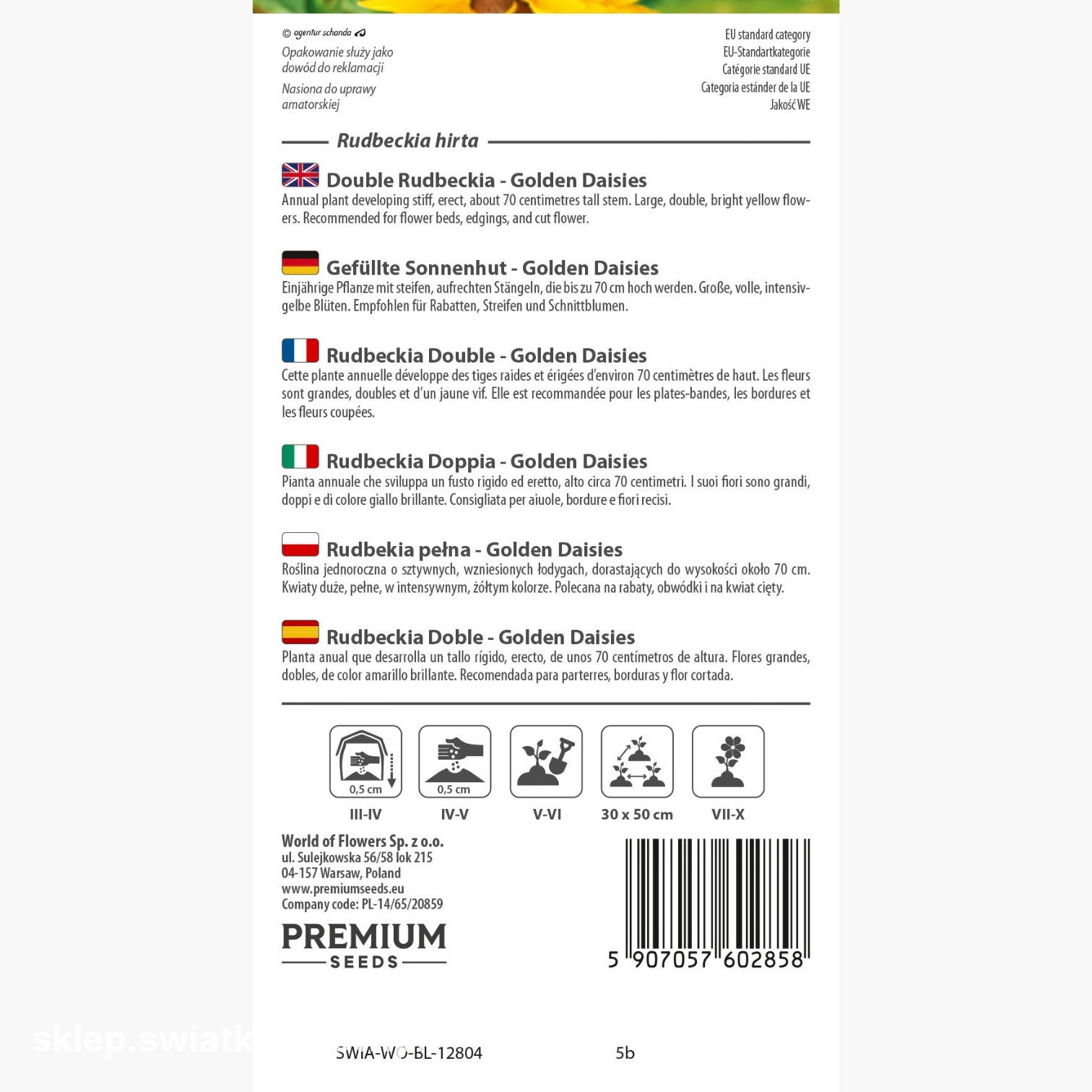 Opakowanie zawiera 0,3 g nasion. Na opakowaniu znajdziesz informacje o zasadach uprawy i terminie przydatności do wysiewu.