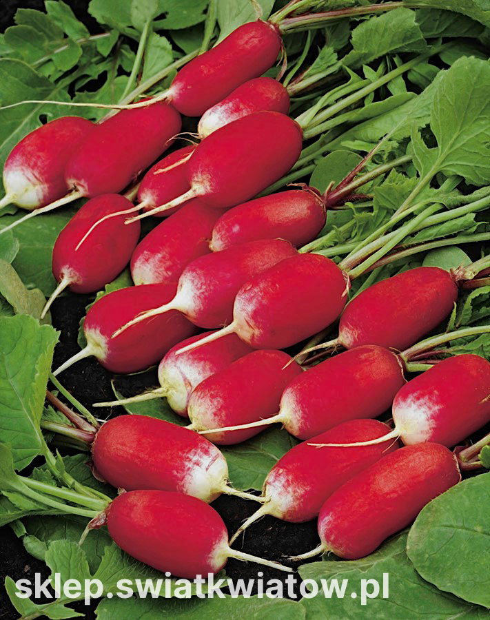 Rzodkiewka Esmeralda F1 (Raphanus sativus) to odmiana przeznaczona do całorocznej uprawy pod osłonami oraz w gruncie przez cały okres wegetacyjny, dzięki odporności na wybijanie w pędy nasienne. Tworzy chrupiące, podłużne, czerwone zgrubienia z białą końcówką. Jest to odmiana o wyjątkowym smaku, nadająca się do bezpośredniego spożycia jako dodatek do kanapek, twarożku, surówek i sałatek oraz do dekoracji potraw. Zgrubienia korzeniowe rzodkiewki to bardzo bogate źródło witamin C, B1 i B2 oraz soli wapnia, fosforu i żelaza. Obecny w zgrubieniach rzodkiewki olejek goryczkowy reguluje procesy trawienne. Do spożycia nadają się także liście rzodkiewki, które zawierają nawet sześciokrotnie wyższą zawartość witaminy C niż jej zgrubienia. Można wykorzystać je do przygotowania sosu typu pesto, o bardzo wyrazistym smaku.