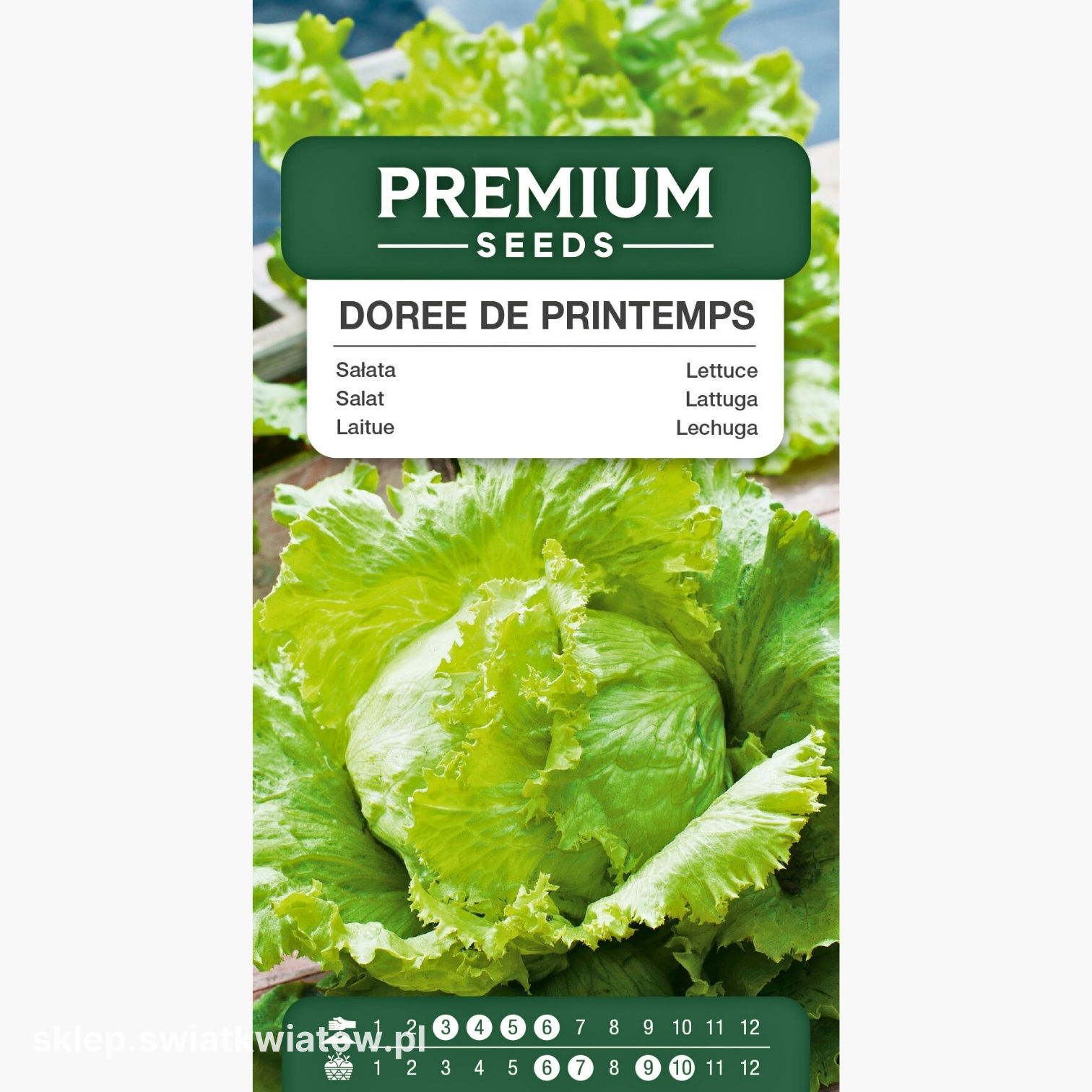 Zbiory sałaty Doree de Printemps przypadają na okres od czerwca do lipca oraz ponownie od września do października, w zależności od terminu siewu i pogody. Liście utrzymują świeżość i chrupkość przez długi czas, co sprawia, że można cieszyć się ich smakiem jeszcze kilka dni po zerwaniu. Zrywanie główek rano lub wieczorem, w czasie niższej temperatury, pozwoli zachować ich świeżość i doskonały wygląd.