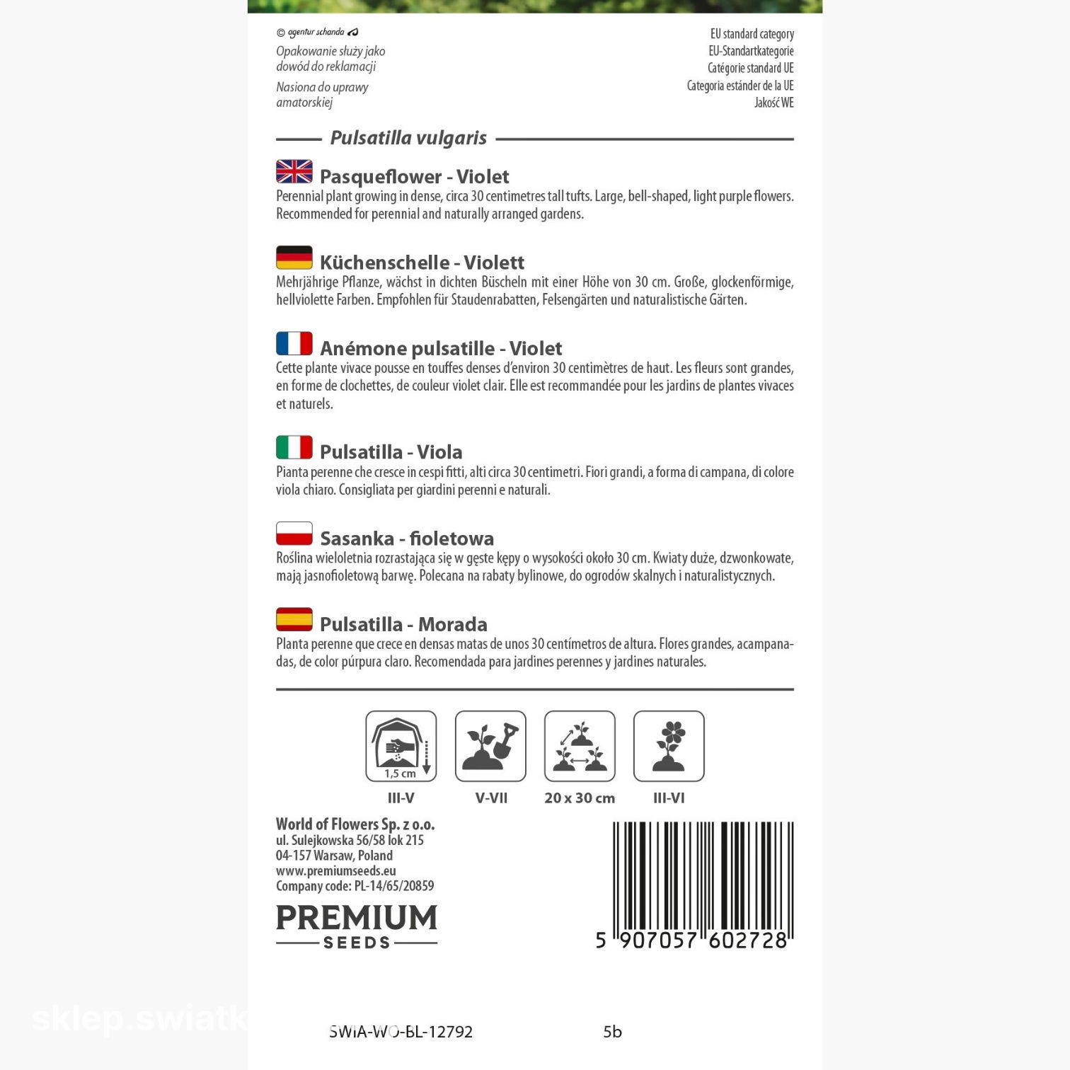 Sasanka kwitnie od marca do czerwca, obsypując się licznymi kwiatami w fioletowym kolorze. Po przekwitnięciu jej puszyste, srebrzyste owocostany nadal zdobią ogród, tworząc delikatny, romantyczny akcent wśród młodej, wiosennej zieleni.