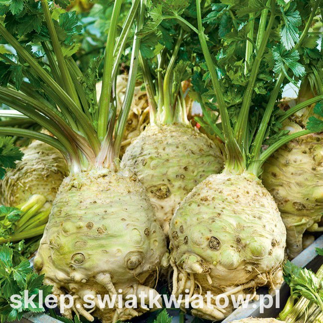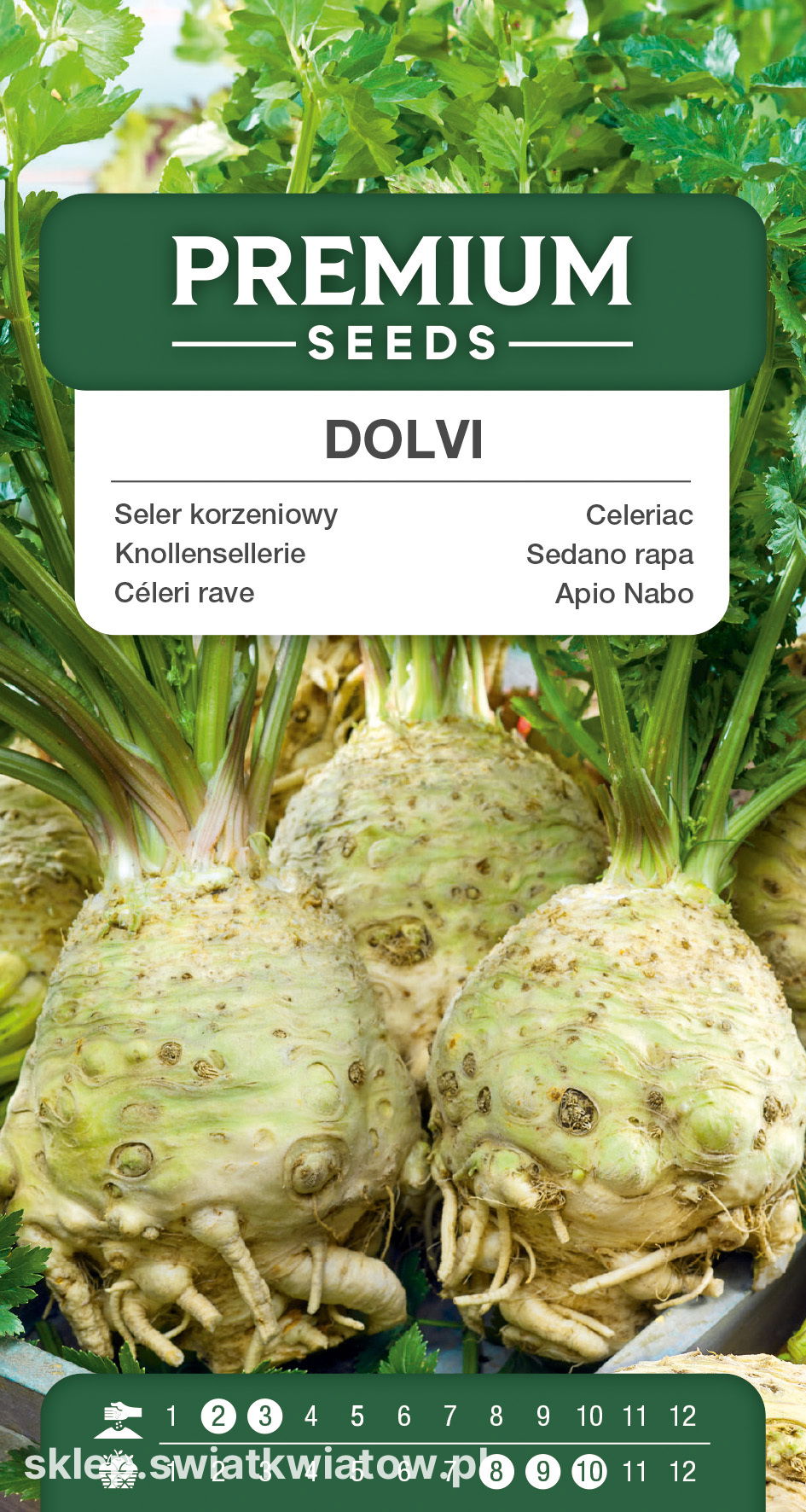 Seler korzeniowy Dolvi (Apium graveolens) posiada duży korzeń i białokremowy, kruchy miąższ, pozbawiony pustych przestrzeni i okryty jasną skórką. Ta wartościowa odmiana ma sporo wspólnego z cenionym selerem Prager Reuzen, oprócz wysokiej jakości zgrubień w rozmiarze XXL charakteryzuje się jednak znakomitą odpornością na przedwczesne wybijanie w pędy nasienne. Jej kuliste korzenie, obfitujące w lecznicze olejki lotne, witaminy B6, B9, C PP, K, fosfor, potas, żelazo, magnez, cynk i wapń, świetnie sprawdzają się jako składnik surówek, sałatek i zup, można też dowolnie je przetwarzać. Mają wyrazisty smak, dzięki czemu stanowią wyborną przyprawę, a z uwagi na właściwości poprawiające trawienie szczególnie dobrze zgrywają się z tłustymi daniami mięsnymi.