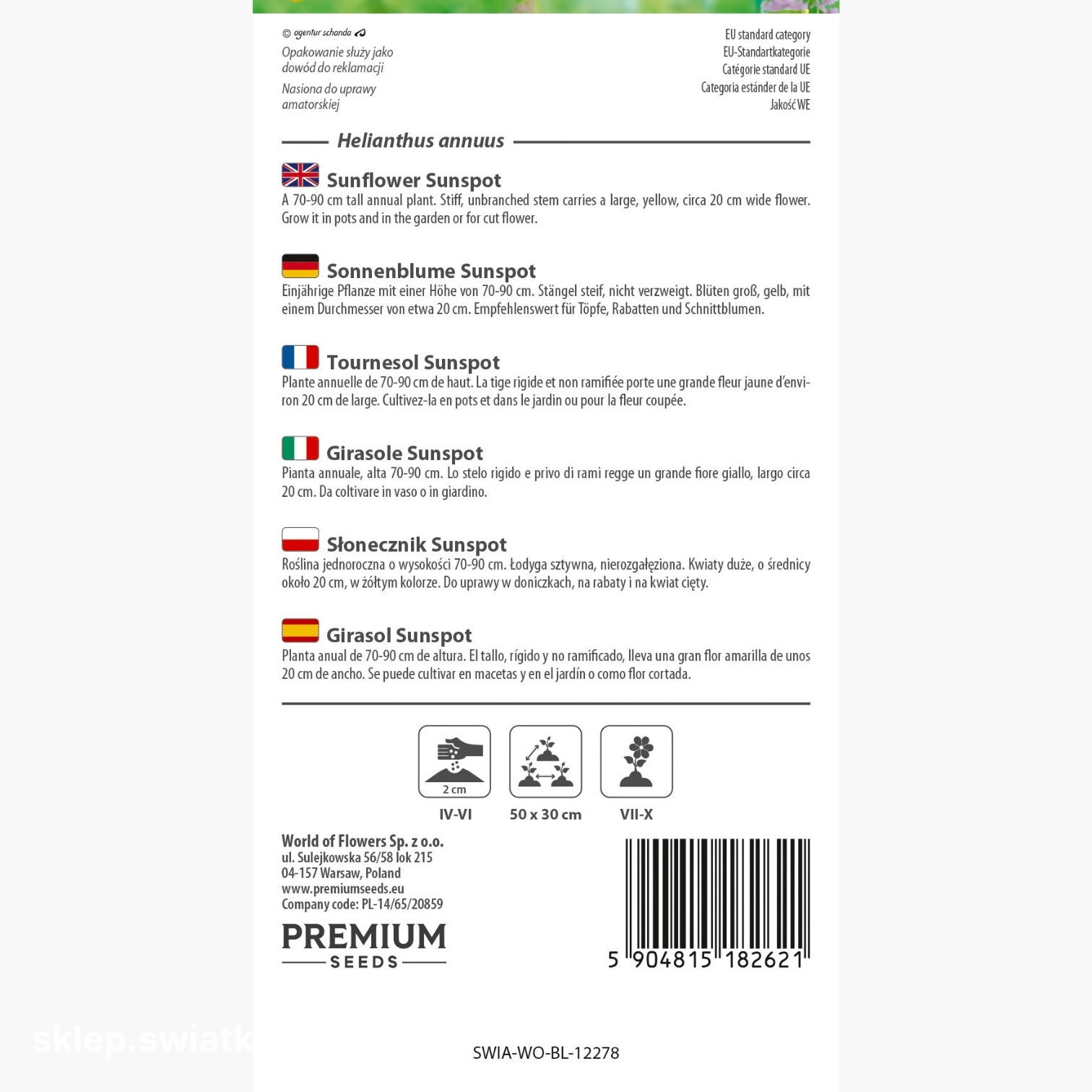 Zakup nasion słonecznika Sunspot w Sklepie Świat Kwiatów to gwarancja najwyższej jakości i starannie wyselekcjonowanych nasion premium. Sklep oferuje szybkie dostawy oraz profesjonalne doradztwo, co pozwala cieszyć się udaną uprawą. Klienci doceniają również bogaty asortyment i atrakcyjne promocje, co czyni zakupy w Świecie Kwiatów przyjemnym doświadczeniem.