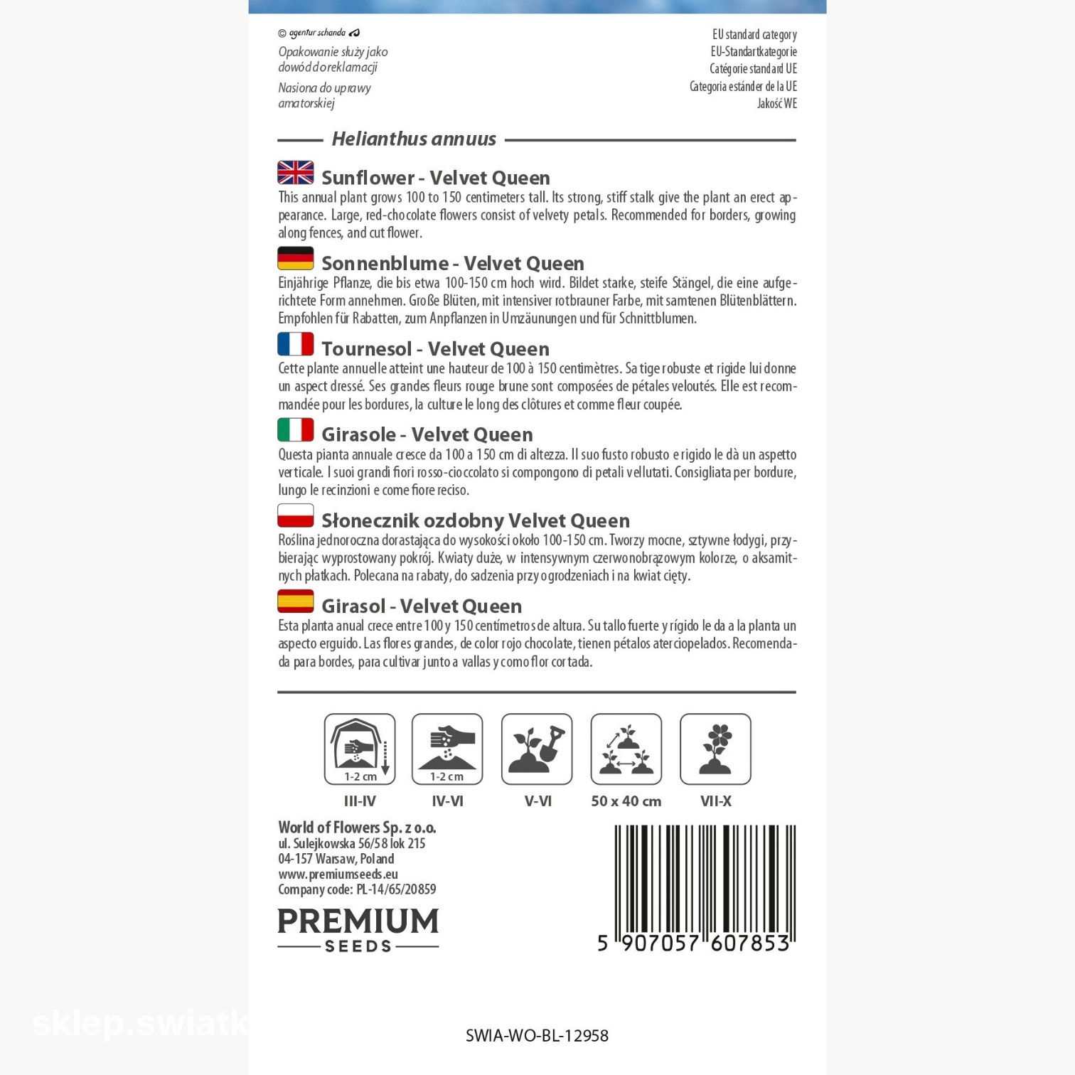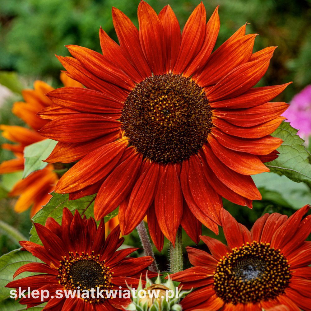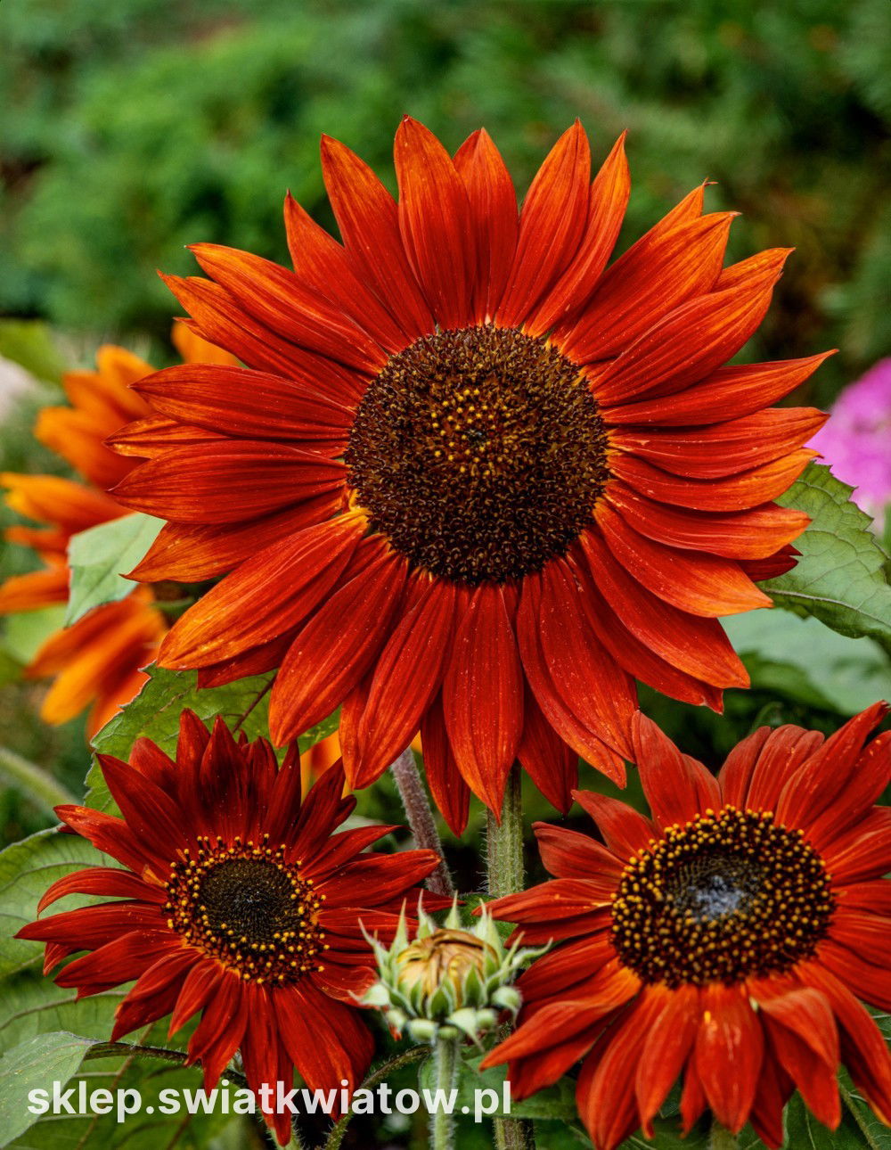 Słonecznik Velvet Queen to odmiana o intensywnych, czerwono-brązowych kwiatach, które od razu wyróżniają się na rabacie. Każdy koszyczek wygląda jak małe dzieło sztuki, dodając ogrodowi elegancji i wyjątkowego charakteru. Roślina tworzy mocne, stabilne pędy, które doskonale znoszą wiatr i utrzymują kwiaty w idealnej ekspozycji. To propozycja dla osób, które chcą nadać ogrodowi barwę nieszablonowej czerwieni oraz cieszyć się rośliną odporną, łatwą w uprawie i niezawodnie kwitnącą nawet przy chłodniejszej pogodzie.