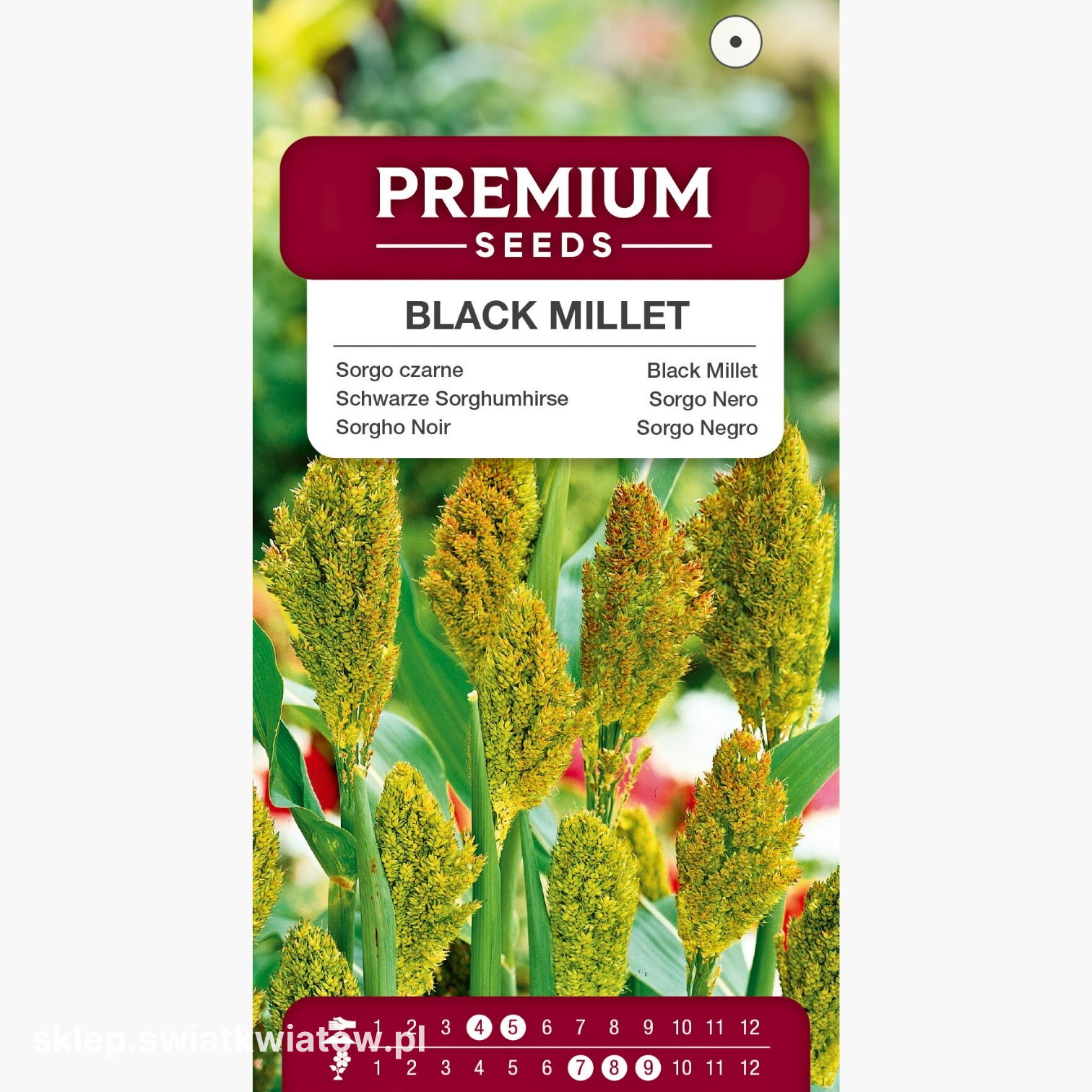 Sorgo czarne kwitnie od lipca do września, w pełni lata, gdy promienie słońca wydobywają z jego wiech niezwykły połysk i głębię koloru. Kłosy długo utrzymują walory ozdobne - nawet po zaschnięciu pozostają efektowne i doskonałe do jesiennych aranżacji.